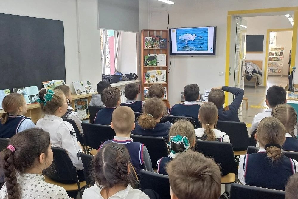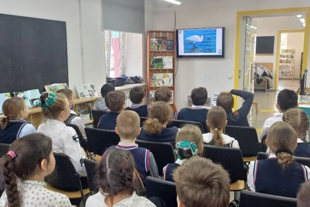 Оживлённо выполнили практическое задание: по слайду с фотографией посчитали общее количество гнёзд и общее количество птиц. Много других интересных подробностей узнали школьники об этой замечательной птице, а в заключение посмотрели видео, предоставленное нацпарком «Земля леопарда».