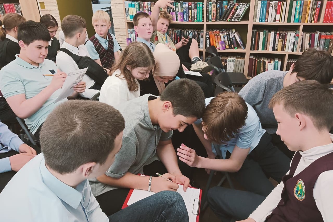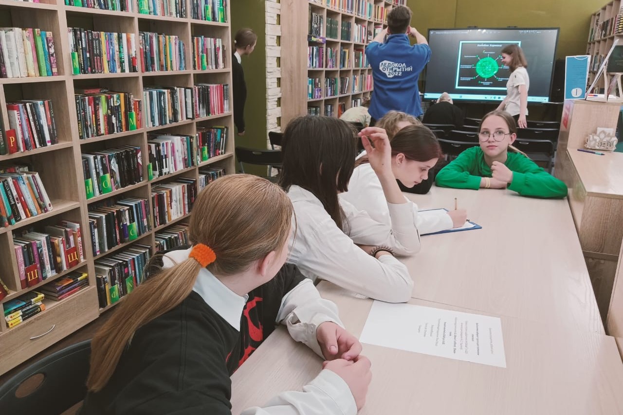 В формате квеста, творческой инициативы шестиклассники (6 «Г» класса МБОУ «СОШ № 22») сначала почувствовали себя в роли детективов и отыскали на полках зашифрованную модератором книгу. Никита открыл ребятам некоторые законы, каноны, по которым строится литературное произведение. Например, как связаны истории великих русских классиков и истории Бэтмена? Всё дело в круге Хармона — это техника или закон построения произведения: есть некоторая зона комфорта героев, проблема, герой попадает в опасную среду, он приспосабливается к ней, далее главный герой находит то, что хочет и расплачивается за достигнутое, после — возвращается в зону комфорта, в итоге, — персонаж (герой) изменился. Ребята стали обладателями этих знаний и тут же получили новое задание: попробовать себя в роли начинающего писателя и сочинить свою книжную историю. Работа в группах закипела. Интересно было услышать, что получилось у подростков.