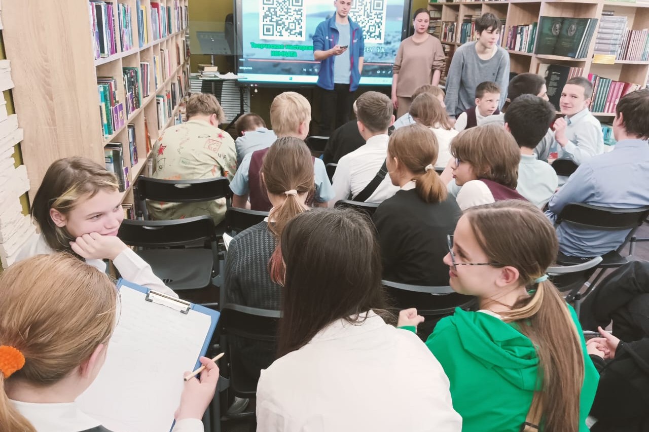 В формате игры, творчества, общения шестиклассники поближе познакомились с библиотечным пространством, ее фондом, проявили интерес к книге, чтению и сотворчеству. Студент ДВФУ Терновой Никита предложил ребятам следить за творческими инициативами, участвовать в олимпиадах, конкурсах, фестивалях с целью продвижения чтения и развития своих креативных способностей и пространство современной библиотеки – это некий трамплин в реализации творческих планов, своего потенциала.