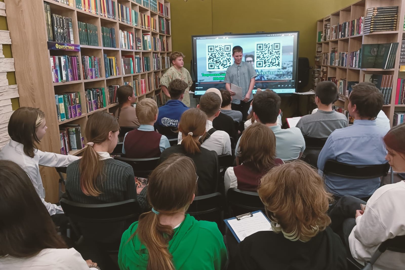 17 мая на площадке библиотеки № 4 победитель конкурса «Большая перемена», студент ДВФУ Терновой Никита представил школьникам свой проект «Библиотечные истории «КОМНАТА»