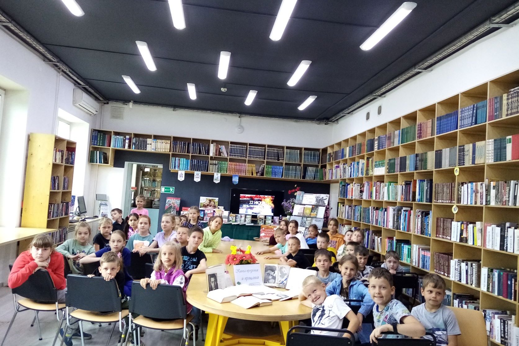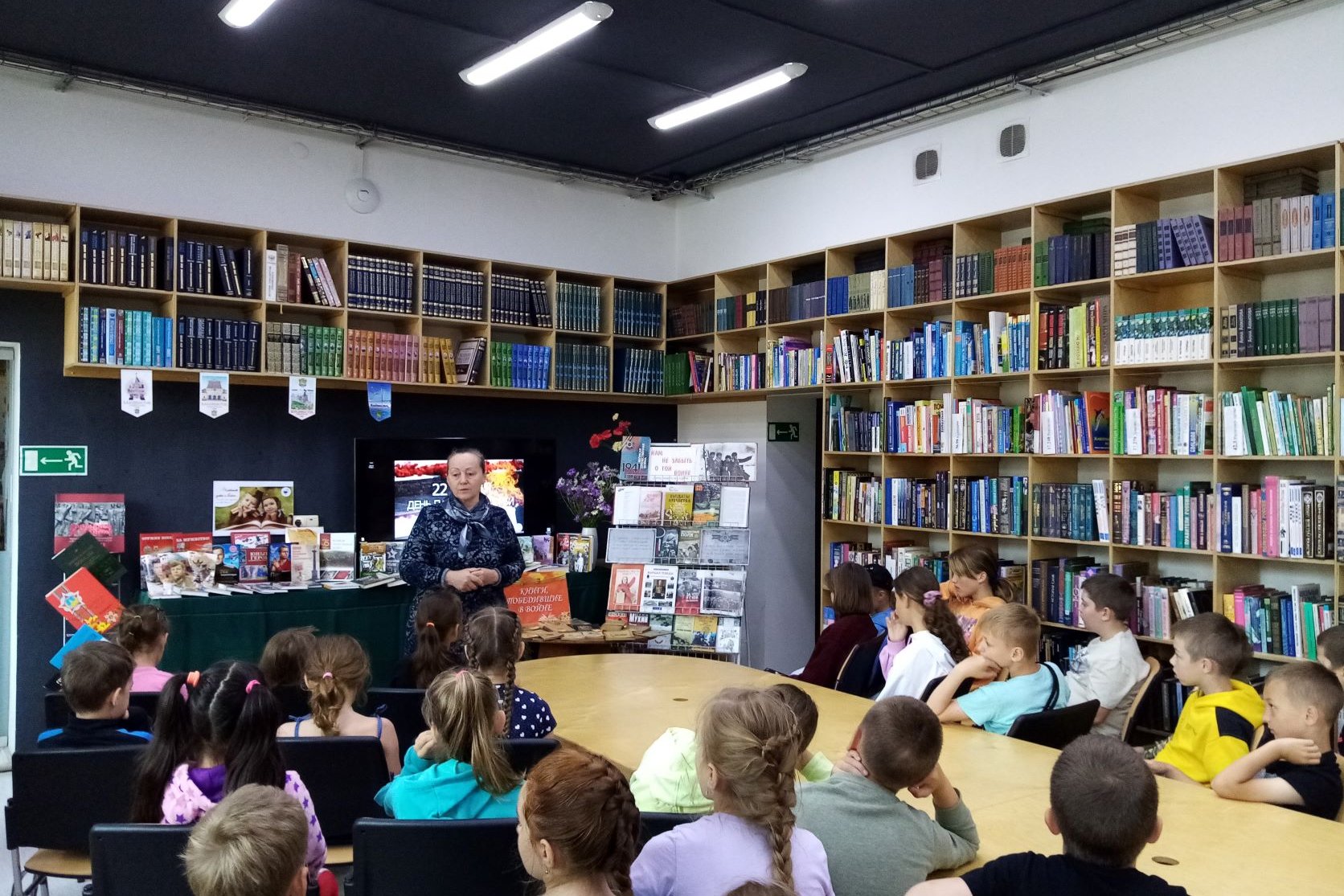 Ребята узнали о первых городах, которые приняли на себя удар, о детях-героях, которые своим трудом и храбростью помогали фронту, о городах боевой славы, о подвигах советских людей: взрослых и детей, удостоенных звания Героя Советского Союза. Далее все присутствующие почтили память павших героев минутой молчания. Завершилось мероприятие обзором выставки «Читают дети о войне.