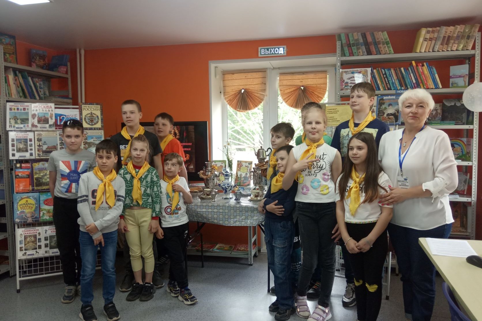 Для воспитанников детских садов МДОУ д/с №144, ФГБДОУ «ЦРР д/с №188» и ребят, отдыхающих в летних лагерях отдыха отряд «Орленок» при ЦДТ Советского района и при МБОУ «СОШ№48» библиотека № 20 провела фольклорный марафон «Год культурного наследия народов России»: этно-час «Иван Иваныч Самовар» (для дошкольников), игровая программа «Возвращение к истокам. Русский самовар» (для школьников).