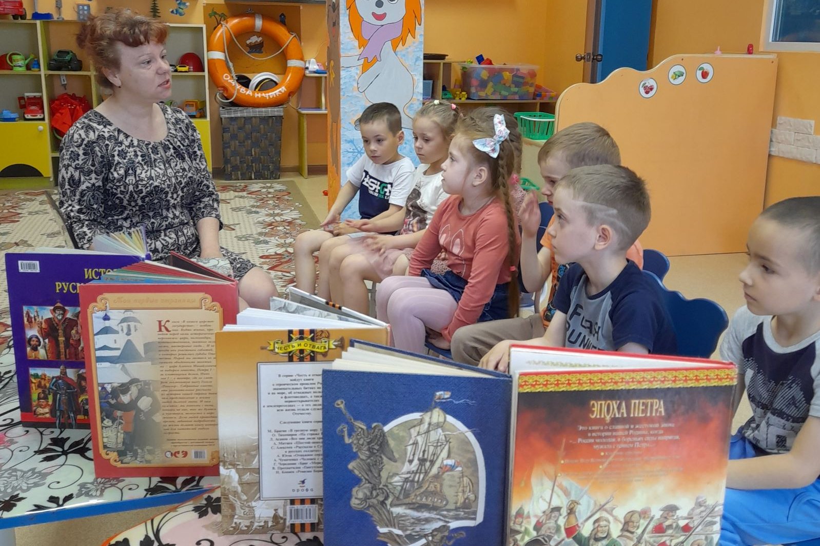 Библиотека №16 знакомила воспитанников ДОУ №68 с личностью Петра Великого. Ребята узнали, как проходило детство и юность Петра I, познакомились с основными преобразованиями, которые ввел Петр I. Рассказали сотрудники библиотеки о том, что именно Петр I «открыл окно в Европу», благодаря его деятельности Россия получила выход к морю и стала морской державой, о том, что красивейший город мира Санкт-Петербург был заложен Петром I. Большой интерес вызвали у ребят загадки – оказалось, что в них скрываются привычные нам вещи – кофе, картофель, подсолнечник, табак, мандарин, Новый год, календарь, тюльпан, но именно они были завезены Петром I в Россию, «прижились» и стали обыденными для нас вещами.
