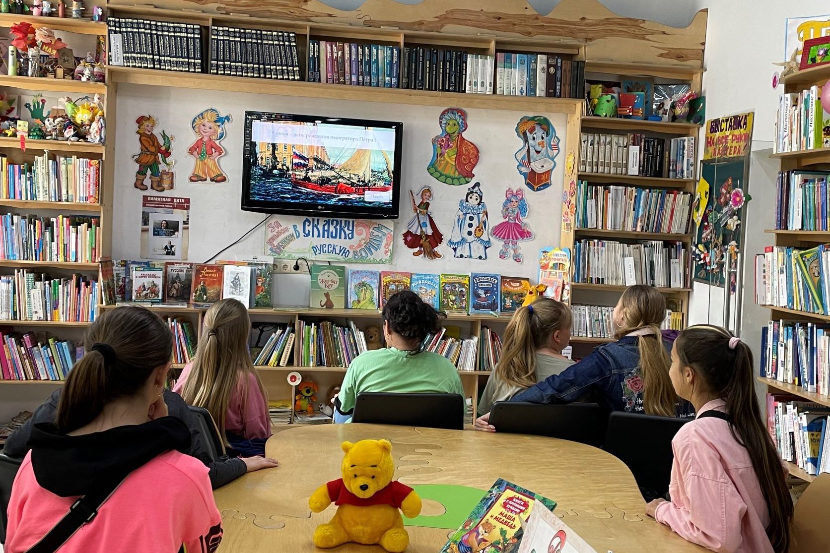 В библиотеке №13 дети из пришкольного лагеря школы №61 посмотрели обучающий мультфильм о жизни царя. Школьники получили много интересной и наглядной информации. Эту информацию ребята закрепили, поучаствовав в викторине на тему «Годы правления Петра Великого».