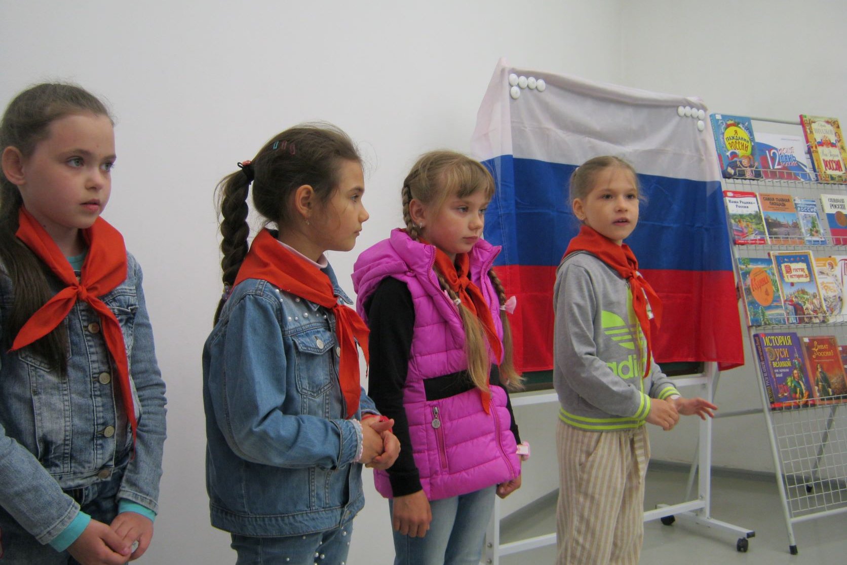 В пятницу детвора собралась вместе с педагогами в библиотеке, чтобы отпраздновать День России. Театр «Апельсин» при ЦРТДиЮ прочитал патриотические стихи, потом дети отгадывали географические загадки о нашей стране и посмотрели короткий, познавательный фильм о России. Празднование началось и закончилось песней, весь разновозрастный отряд встал и спел детскую славную песенку «Моя Россия» и в самом конце гимн.