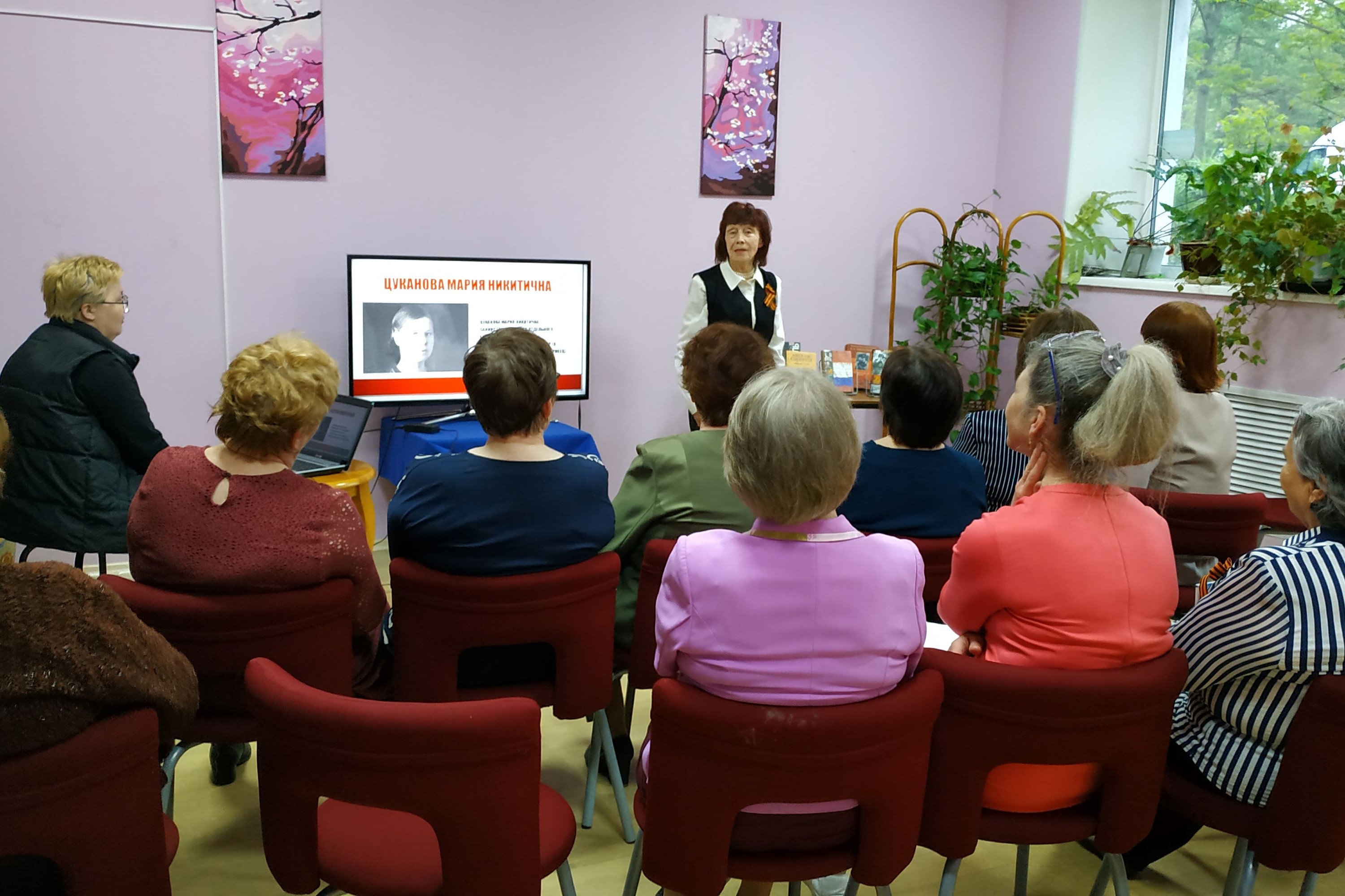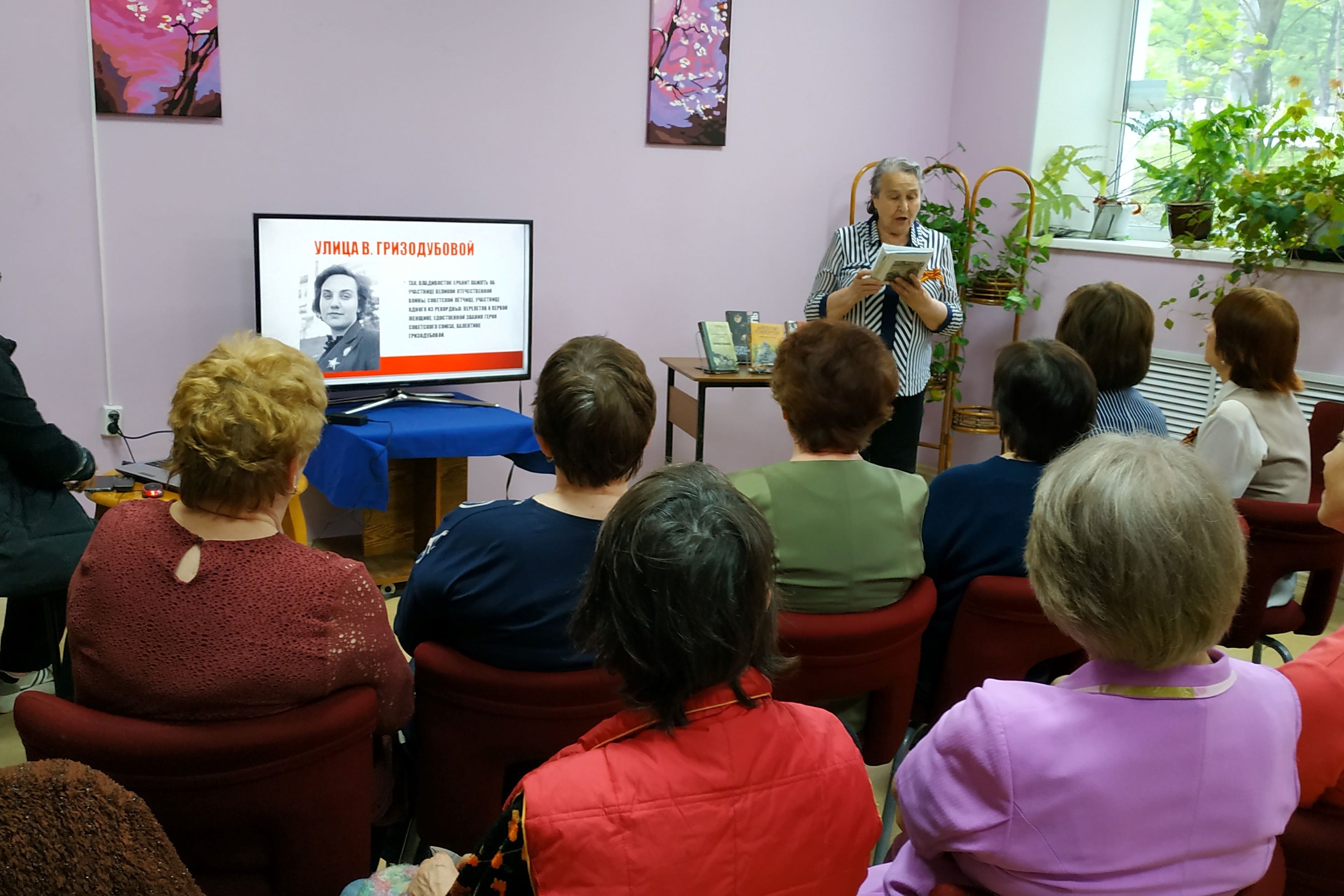В память о начале Великой Отечественной войны в клубе «От сердца к сердцу» прошел 17 июня час гордости «У войны не женское лицо». Вначале участники прослушали презентацию о женщинах-героях из Приморского края. Прозвучали биографии М. Цукановой, А. Щетининой, М. Расковой. Особое внимание уделили названиям улиц Владивостока, названных в честь В. Гризодубовой, М. Расковой совершивших беспосадочный перелет из Москвы на Дальний воток. После этого состоялся концерт, организованный активистами клуба. Звучали песни военных лет, стихи, посвященные матерям, женам, сестрам, потерявшим своих близких на поле боя. Новый член клуба Сутурина Н.А. зачитала отрывок из своего рассказа, посвященного женщинам в тылу. Атмосфера мероприятия была наполнена гордостью за свою страну и народ. Поводом для радости стало пополнение клуба новыми активистами с творческими идеями.