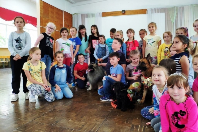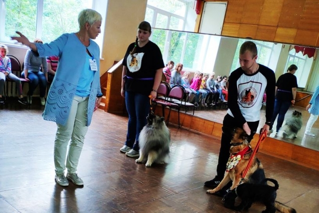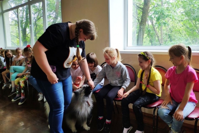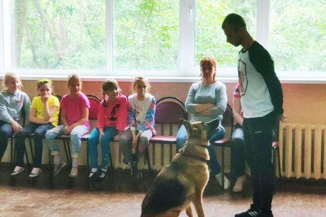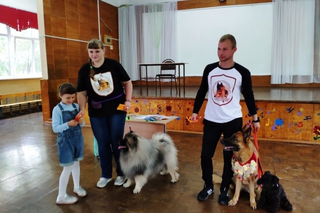 Кинологи рассказали ребятам о тонкостях владения как породистой, так и любой другой собакой, о том, что у каждого питомца обязательно должен быть паспорт с отметками о прививках, клеймо, родословная. И, конечно, очень важно и человеку, и его собаке знать и соблюдать определенные правила поведения. Собаки показали, чему они научились, посещая занятия на дрессировочной площадке. Вольт, например, с большим удовольствием подавал лапу, Маня лихо кружилась в танце, а Руна, как самая старшая, показала мастер-класс идеального собачьего поведения, выполняя все команды Владислава, понимая его буквально с одного взгляда. Закончилась встреча всеобщими обнимашками и традиционной фотосессией.