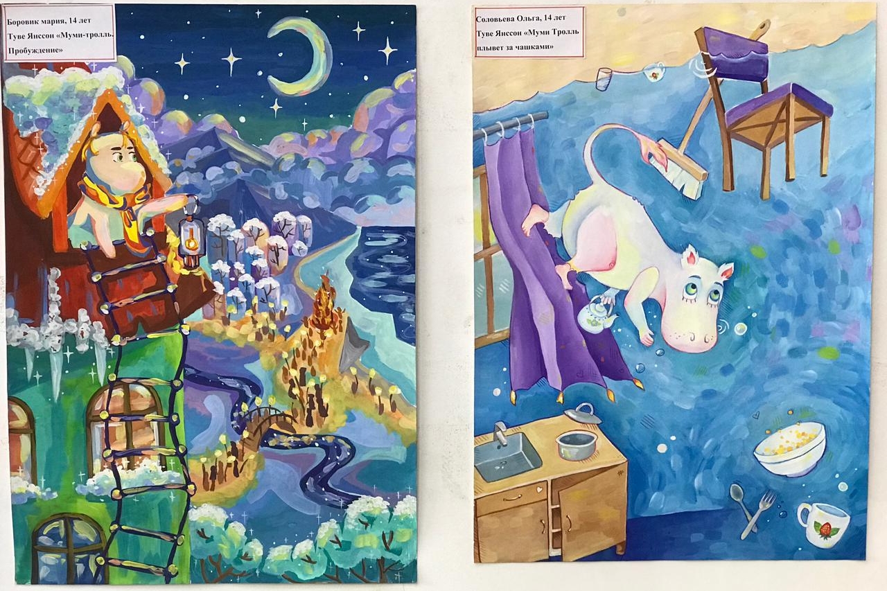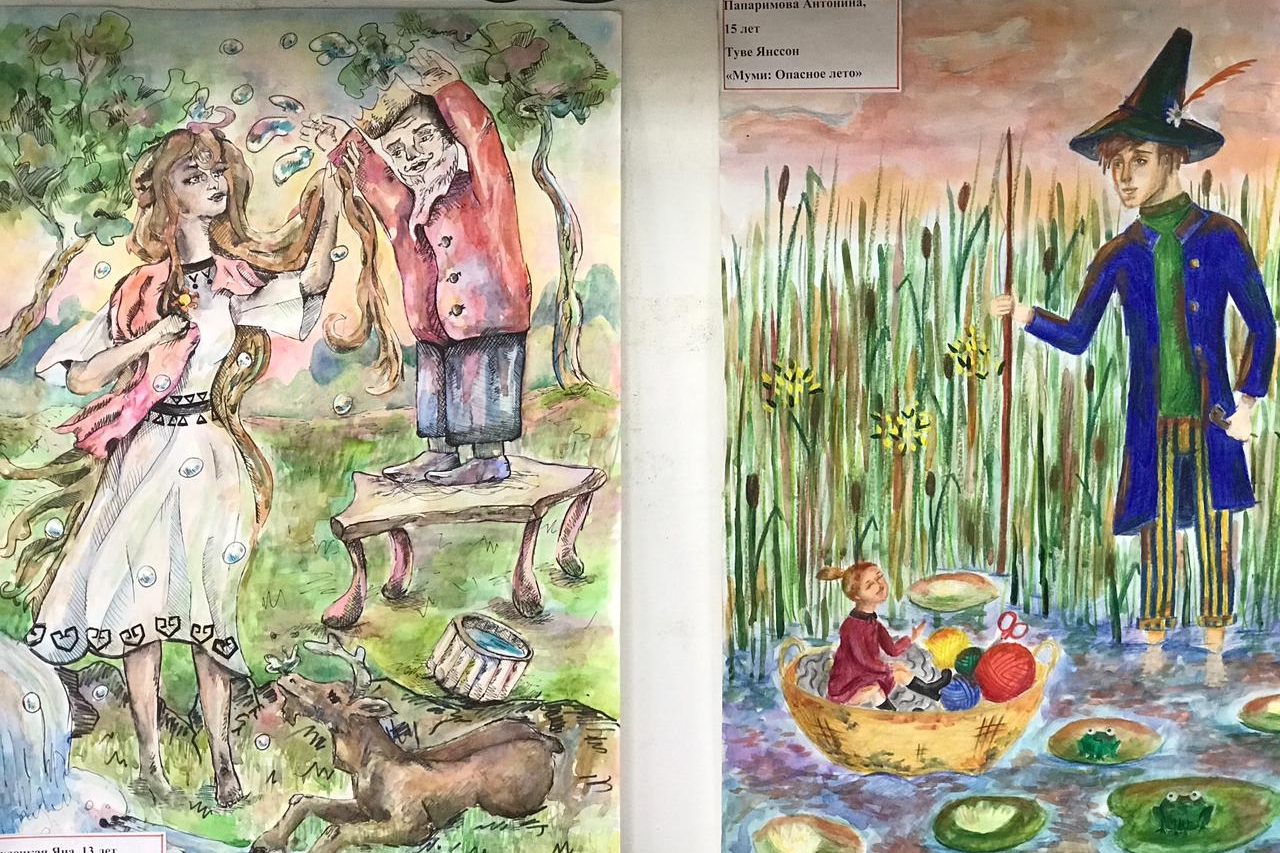 Юные художники с интересом узнали, как же появились на свет муми-тролли и многие другие герои всемирно известной финской писательницы, художницы и иллюстратора Туве Янссон, выяснили почему писательница, живущая в Финляндии, пишет на шведском языке. Они обстоятельно изучили ее творчество, читали ее произведения: «Муми-тролль и комета» — глава «Долгожданная встреча», «Волшебная зима» — глава «Таинственные существа», «Пробуждение», «Опасное лето», «Муми-тролль плывет за чашками». Читали «Калевалу», которую простыми словами можно описать как сборник рассказов и преданий. В нём повествуется о создании мира и также о некоторых финских и карельских обрядах.