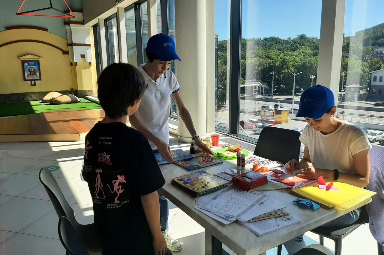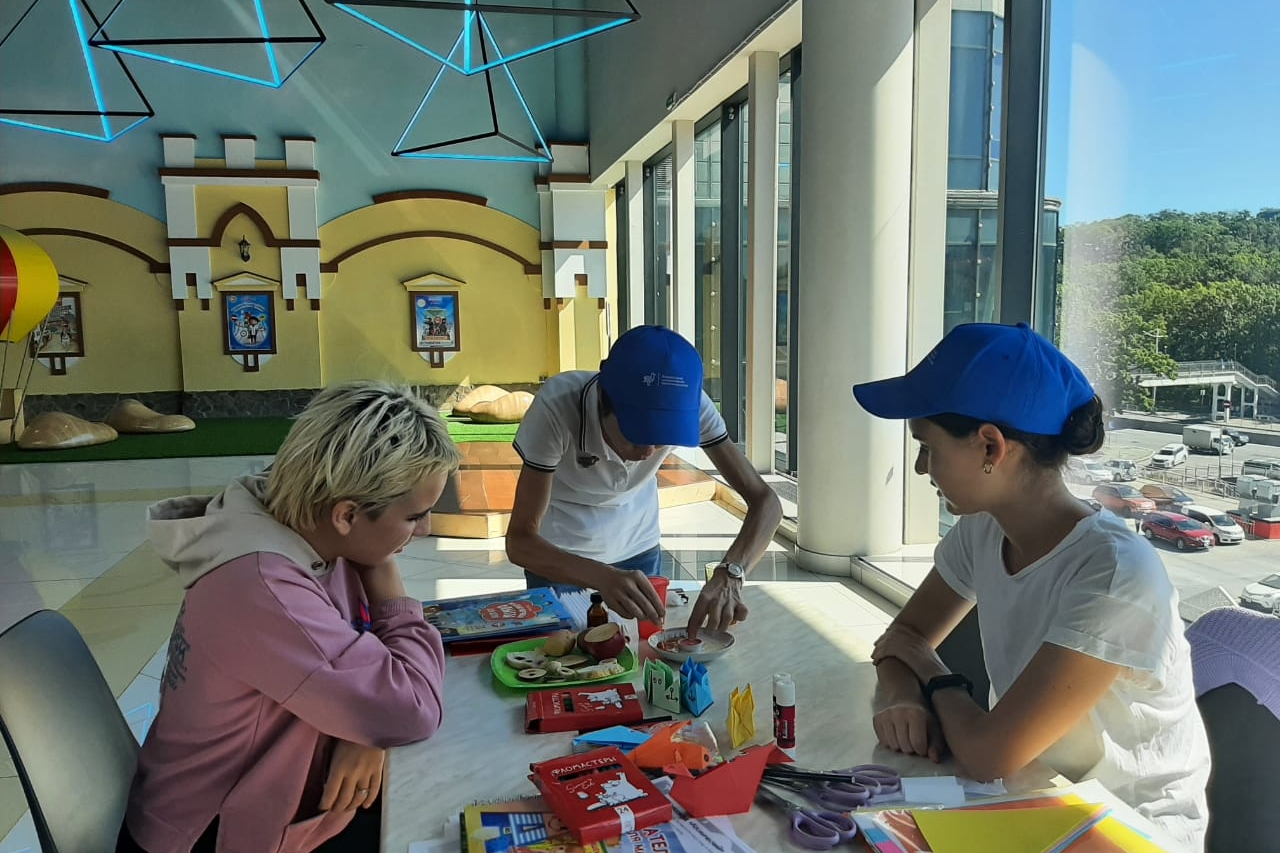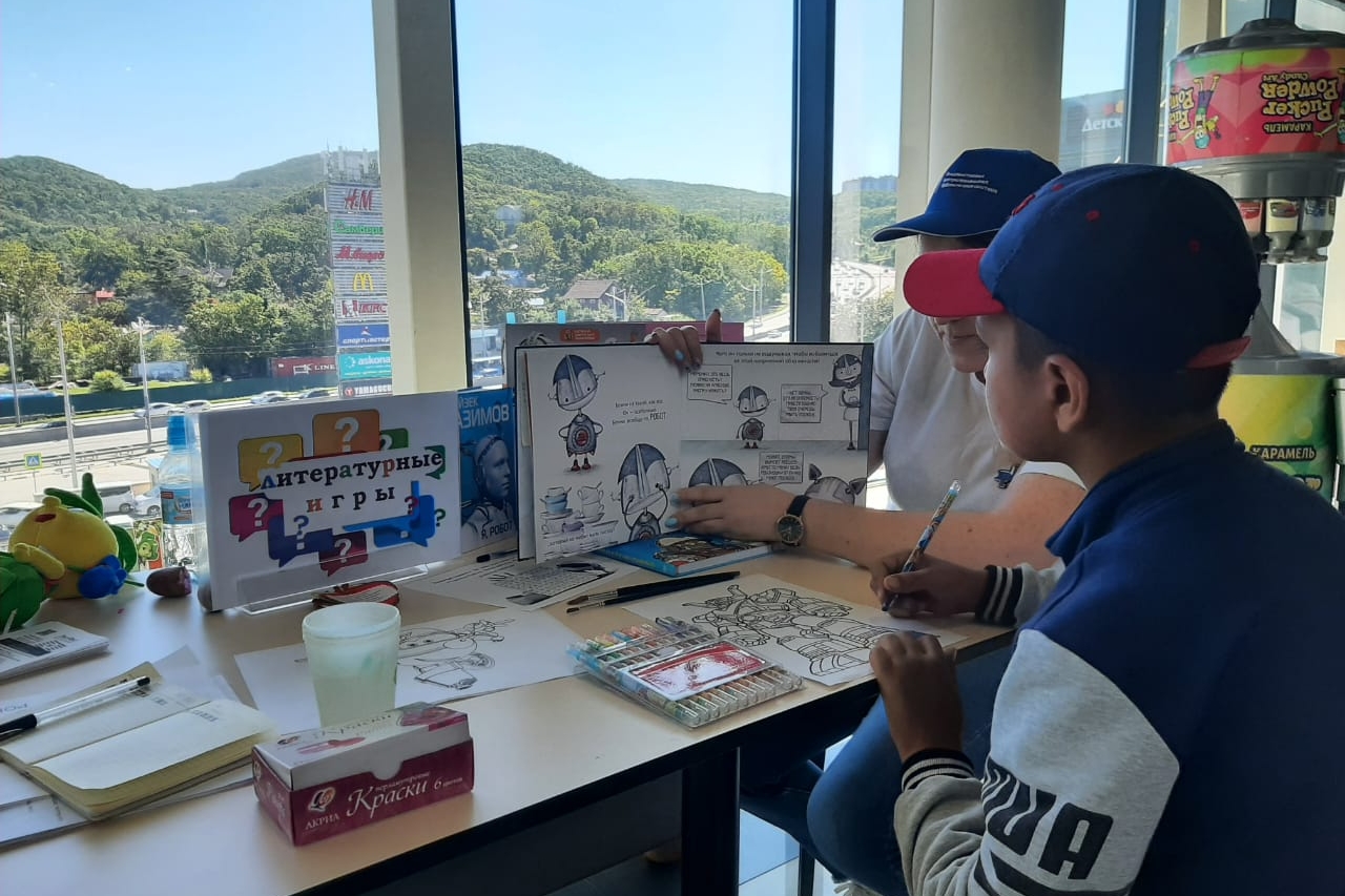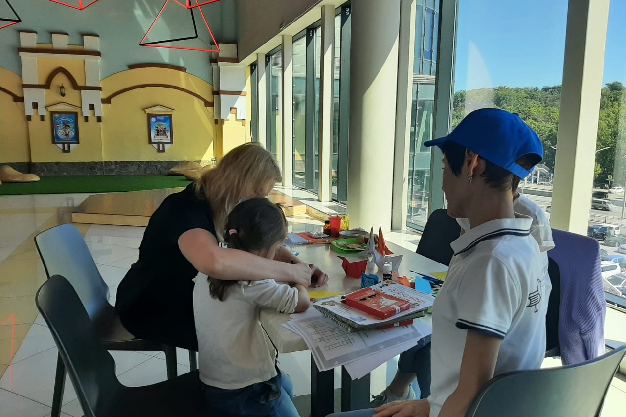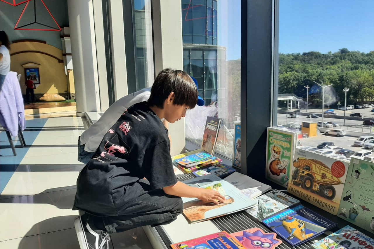 В прошедшую субботу открытая библиотечная площадка в ТРК «Седанка-Сити» была посвящена научно-популярной и познавательной литературе для детей. Дети, подростки и родители познакомились с самой разнообразной литературой о науке, технике, живой природе и в целом об окружающем мире. Большим интересом пользовались иллюстрированные путеводители и энциклопедии о роботах, различной технике, динозаврах, загадках животных. Из библиотечных фондов были представлены книги-конструкторы, книги-игрушки, книги о проведении различных опытов, азбука с шаблонами для рисования для ребят разного возраста. Кроме знакомства с книгами юные горожане приняли участие в викторинах, разгадывали кроссворды и отгадывали загадки о космосе, технике, школьных предметах, природе. Ребята приняли участие в простейших опытах на выявление крахмала в овощах и фруктах, узнали, как вырастить кристаллы соли в домашних условиях, наглядно увидели, что такое статическое электричество и других интересных опытах. Дети с родителями с удовольствием принимали участие в мастер-классах оригами, рисованию красками с помощью шаблонов из сырого картофеля, складыванию фигурки робота из бумаги.