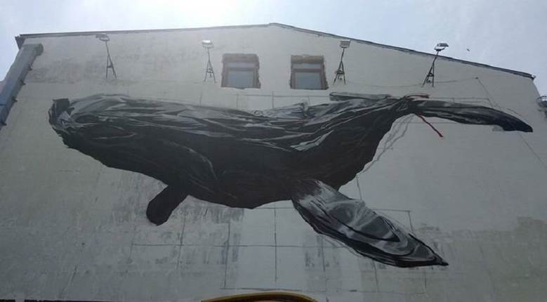Музыкальную тему сменила экологическая — граффити «Мусорный кит» — работа, созданная французскими художниками Полом Ресенкуром и Саймоном Роше в 2019 году: