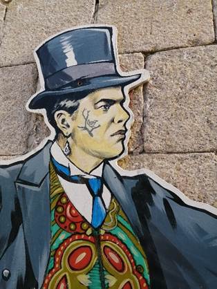 Эпатажный Бурлюк предвосхитил появление панков – эта субкультура, если верить Википедии, возникнет в конце 1960-х — начале 1970-х годов и в странах, далеких от России (в Великобритании, США, Канаде и Австралии). Художники ХХI века тщательно воспроизвели все черты и особенности лица и облика Давида Давидовича, уделив особое внимание рисунку на правой щеке, занимавшему «территорию» от линии рта до брови: птичка на ветке. Не забыли и про объемную серьгу в правом же ухе.