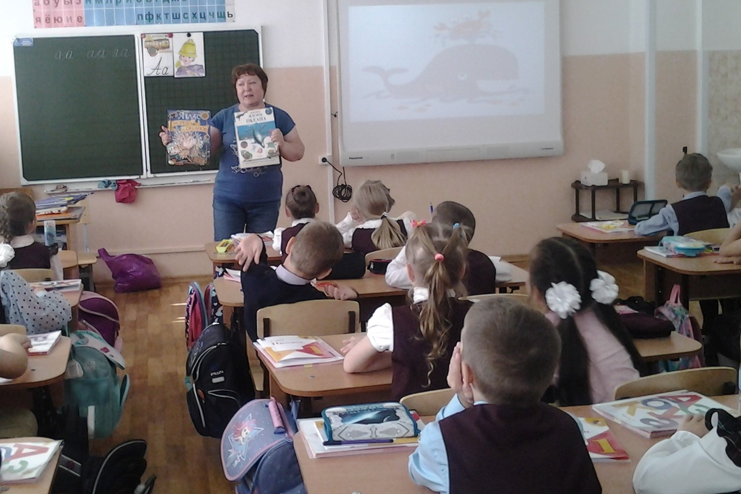 Мероприятие было приурочено к празднику – Всемирному дню моря, который отмечается в один из дней последней недели сентября. В этом году праздник отмечают 29 сентября. Первоклашки познакомились с удивительным миром морей и океанов, его тайнами и загадками, интересными историями о подводных обитателях. Дети познакомились с книгой Святослава Сахарнова «Морские сказки» и послушали сказку «Как краб кита из беды выручил», сопровождаемую красочной презентацией с иллюстрациями художника Ю. Смольникова.
