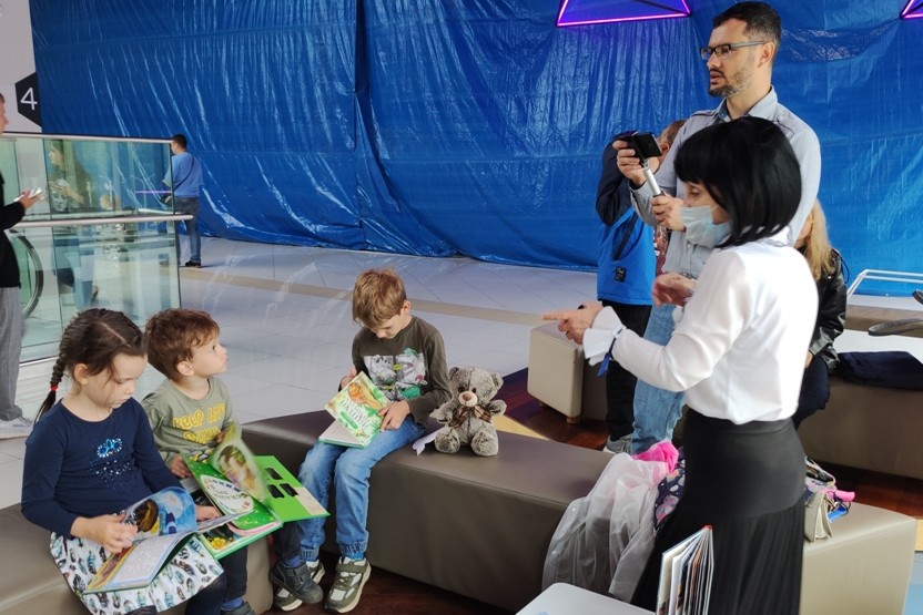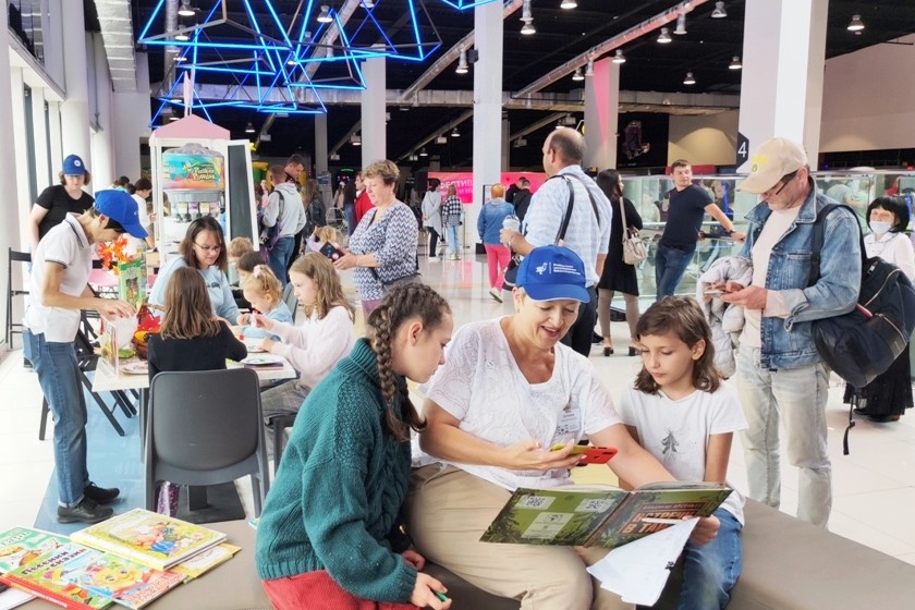 Библиотечную локацию сложно было не заметить – яркое оформление иллюстрациями, книгами, материалами для мастер-классов сразу привлекало к себе внимание.