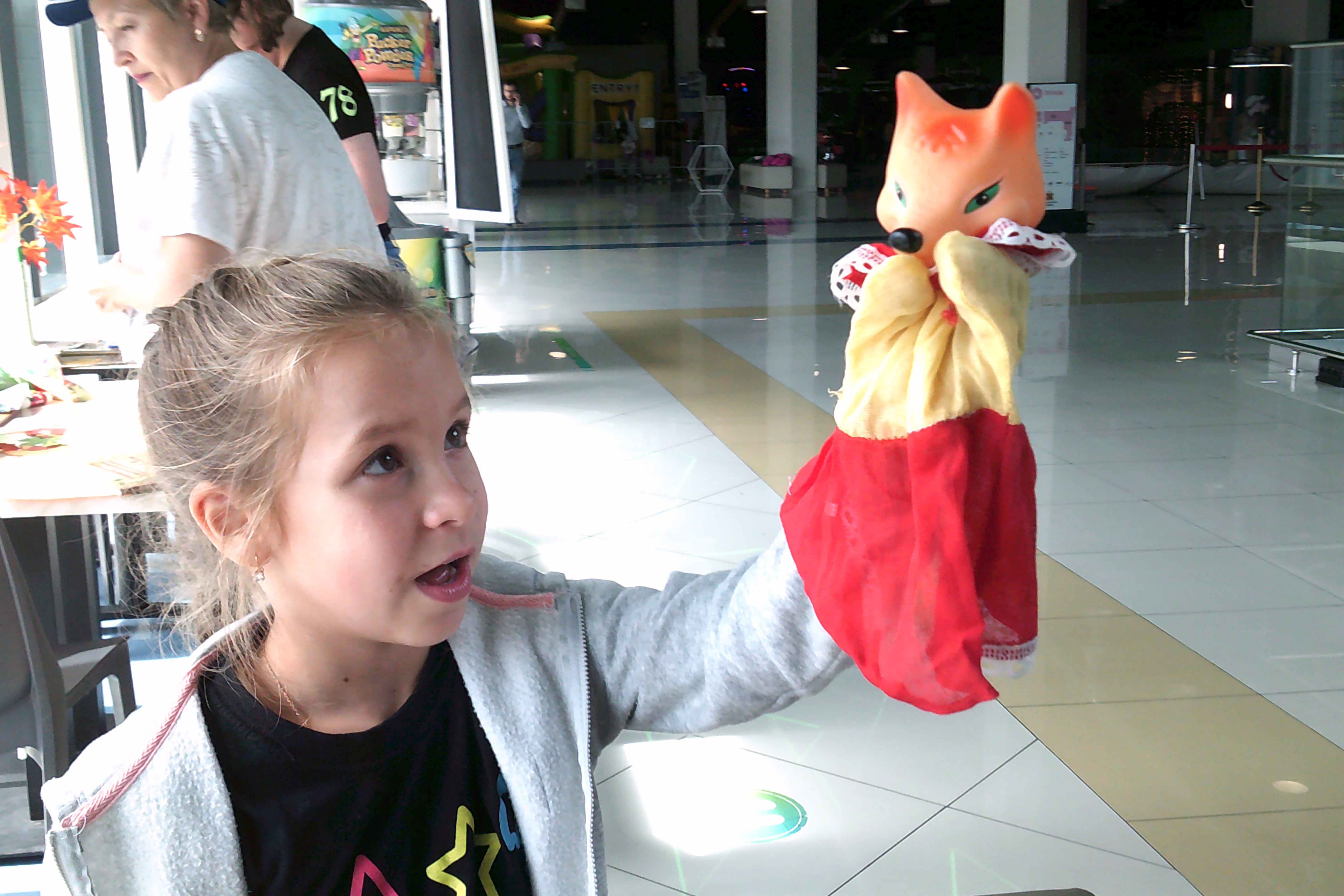 Детвора с удовольствием посетила и «Кукольный театр», где каждый желающий сыграл роль, используя маски лесных зверей, мягкие игрушки и перчаточных кукол. Малыши разыгрывали сценки из русских народный сказок «Лиса и медведь», «Лисичка – сестричка и волк».