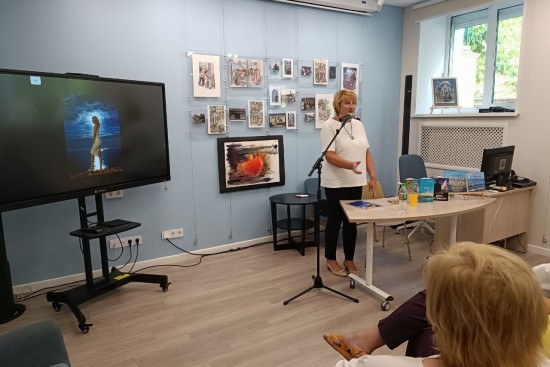 Первую творческую лабораторию в библиотечном пространстве 9 сентября провела Татьяна Таран – писатель, журналист, член Союза российских писателей. Встреча была невероятно содержательной. С самого начала Татьяна захватила и увлекла зрителей авторским чтением своего нового произведения «Ловец солнца». А после рассказала, как создавался этот текст, как приходили идеи, как собиралась информация, как трансформировался сюжет и складывались образы.