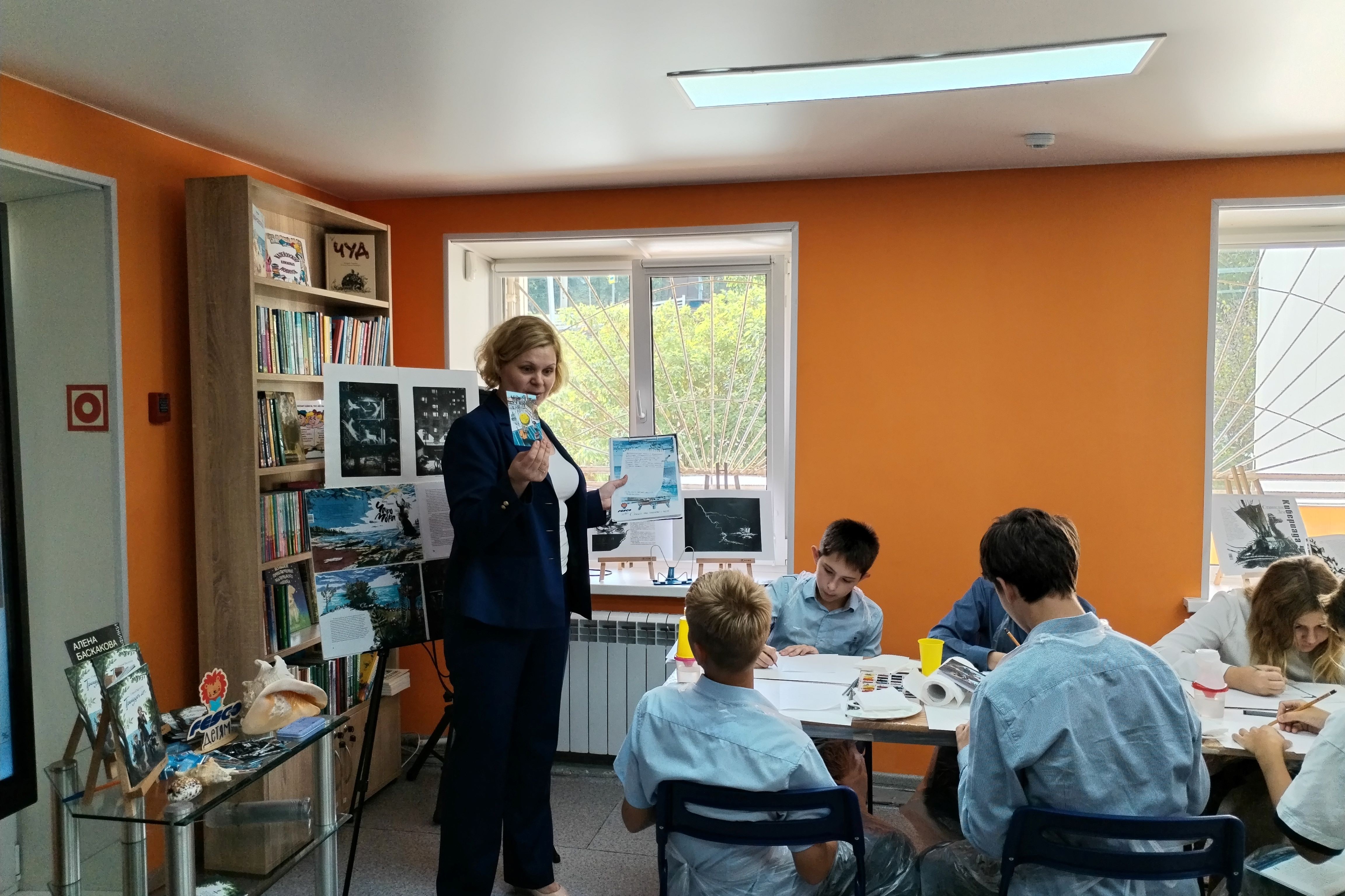 Оксана Сергеевна Варченко, руководитель проекта, и Любовь Сергеевна Рассказова, специалист АНО «Инициатива» Центр развития и поддержки многодетных семей г. Владивосток, представили ребятам книгу, прочитали из нее фрагменты, а также подготовили материалы для мастер – класса «Юный художник – иллюстратор».