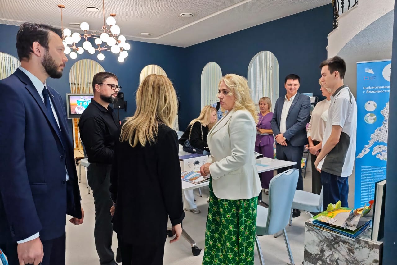В Приморском крае с рабочим визитом в эти дни прибывала статс-секретарь — заместитель министра культуры Российской Федерации Жанна Алексеева. Вместе с заместителем Председателя Правительства – министром культуры и архивного дела Приморского края Еленой Бронниковой 19 сентября они посетили 26-ю ежегодную выставку-ярмарку «Печатный двор». Жанна Владимировна познакомилась со стендом Владивостокской библиотечной системы, где были представлены разнообразный книжный фонд и цифровые проекты библиотечной системы.