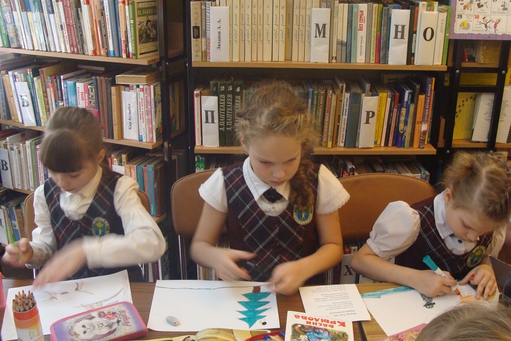В заключение учащиеся посмотрели мультфильм «Ворона и лисица» по одноимённой басне Крылова и нарисовали главных героев прочитанных сказок и басен.