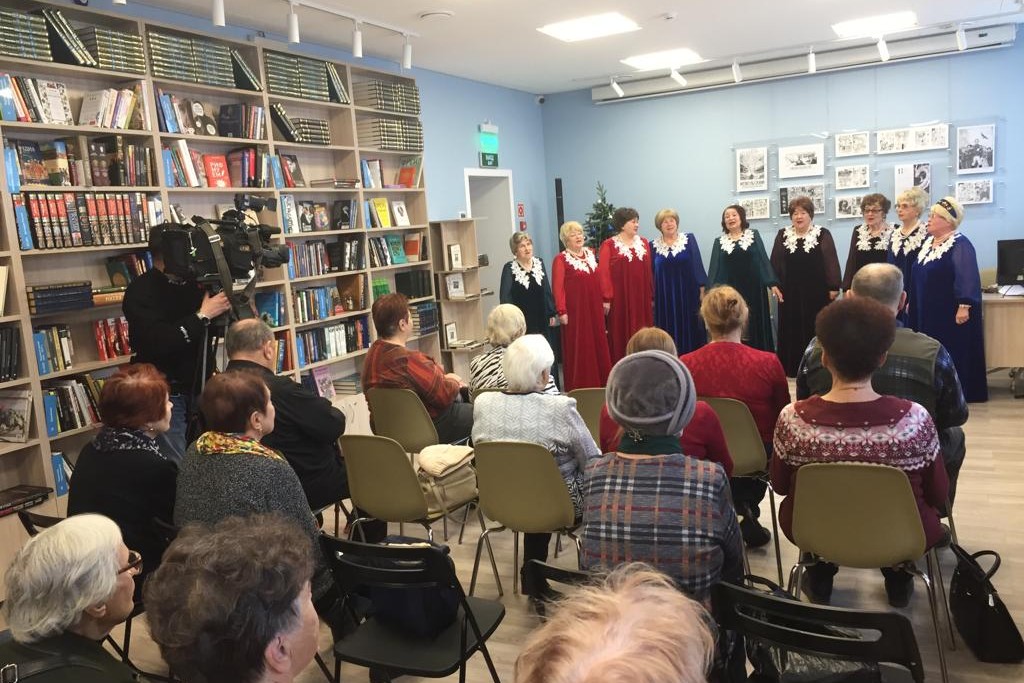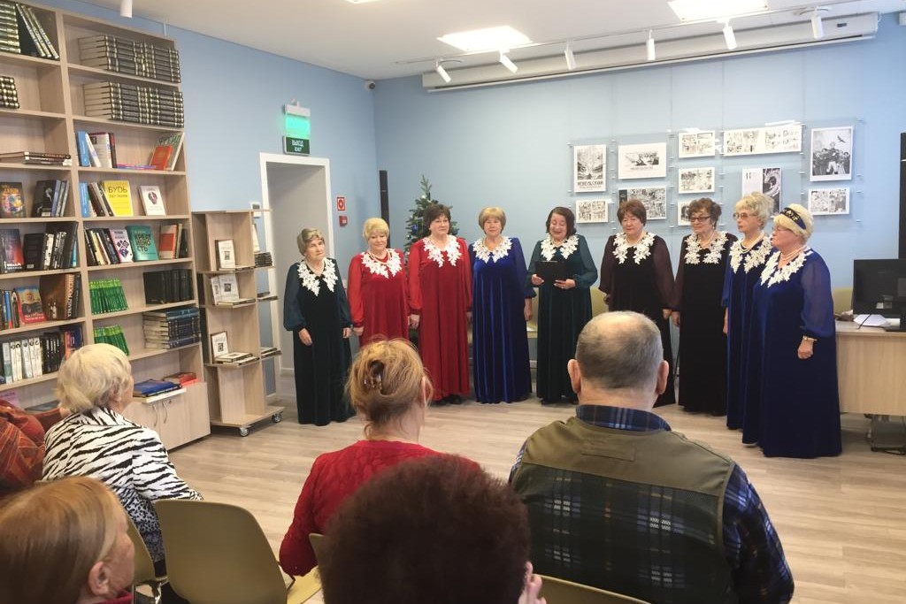 В преддверии Нового года для читателей и гостей библиотеки звучали песни в основном на «зимнюю» тему – «Валенки», «Белым снегом», «Оренбургский пуховый платок», и многие другие прекрасные лирические, спокойные песни, которые хочется подхватить и петь вместе с исполнительницами, чьи голоса звучат так слаженно и проникновенно. Пусть участницам коллектива не мало лет (некоторым уже за 80), но для песни возраст ничего не значит, с ней мы всегда молоды душой.