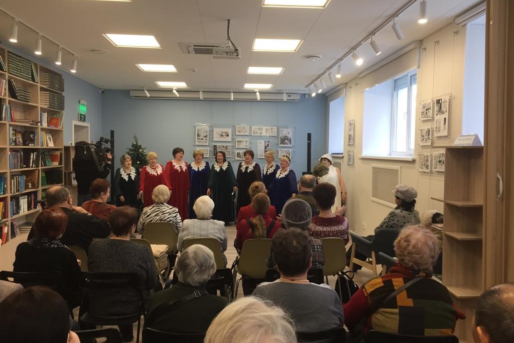 В преддверии Нового года для читателей и гостей библиотеки звучали песни в основном на «зимнюю» тему – «Валенки», «Белым снегом», «Оренбургский пуховый платок», и многие другие прекрасные лирические, спокойные песни, которые хочется подхватить и петь вместе с исполнительницами, чьи голоса звучат так слаженно и проникновенно. Пусть участницам коллектива не мало лет (некоторым уже за 80), но для песни возраст ничего не значит, с ней мы всегда молоды душой.
