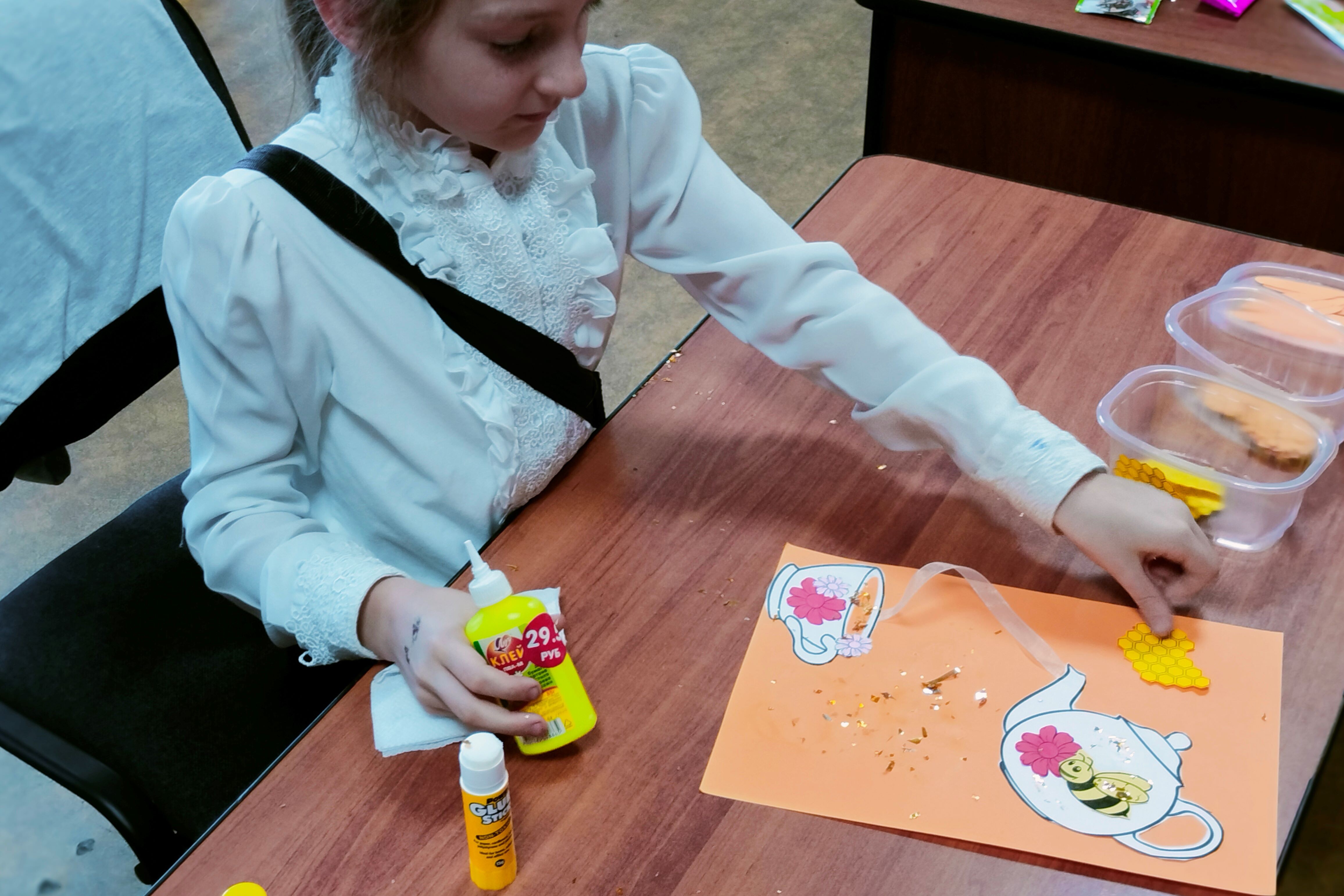 Конечно же вспомнили книги, в которых есть упоминание о чае и самоваре: сказку Корнея Ивановича Чуковского «Муха-цокотуха», знаменитое «безумное чаепитие» Льюиса Кэрролла в книге «Алиса в стране чудес», ещё одно чаепитие в произведении Памелы Трэверс «Мэри Поппинс, стихи Даниила Хармса «Иван Иваныч Самовар», сказку Максима Горького «Самовар». Детям было интересно послушать, как Александр Сергеевич Пушкин описывает чаепитие в своем романе «Евгений Онегин». В продолжение беседы дети мастерили из бумаги чайную чашку с блюдцем, рисовали, вырезали аккуратно, украшали. Кто-то сделал нарядную игрушку из чашки, чтобы повесить на елочку или в качестве подарка для близких. Кружечки украсили, разрисовали, наклеили самые разные наклейки.
