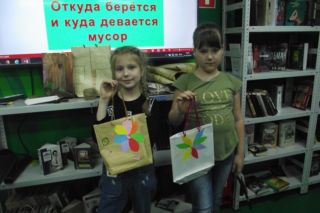21 апреля, в воскресенье, в библиотеке №17 прошел экологический час «Откуда берется мусор?» плюс мастер-класс на тему «Экосумка». Ребятам предложили поиграть в словесную игру «Если я приду в лесок?». Библиотекарь называла свои действия, а ребята оценивали правильный это поступок или нет. Например: «Если я приду в лесок, если съем я пирожок и выброшу бумажку? (дети хором отвечали – нет); Если ветку подвяжу, колышек подставлю? (отвечали – да). В ходе игры ребята понимали, что к окружающей среде надо относиться бережно, нести ответственность за свои поступки.