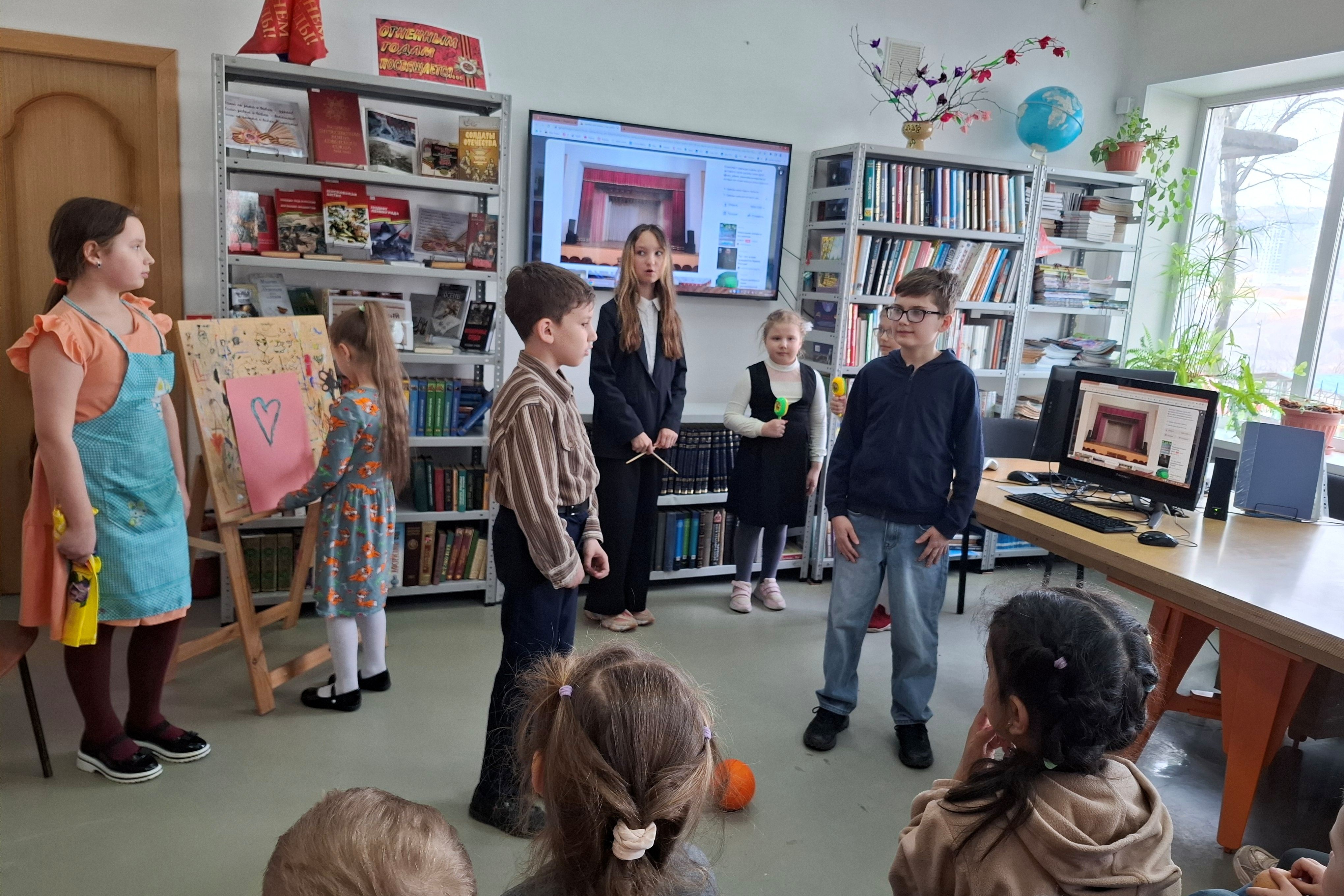 В библиотеке № 16 (ул. Котельникова, 20) состоялось яркое театрализованное представление для воспитанников ДОУ № 68. Его организовали ребята, занимающиеся в театральной студии «Талантики» МБОУ ДОД «Центр развития творчества детей и юношества «Надежда» Первореченского района г. Владивостока» Клуб «Спектрум». Инсценировав стихотворения Эммы Мошковской и Сергея Михалкова «Кумиры не для игры» и «Недотепа», студийцы показали театр в жанре миниатюр.