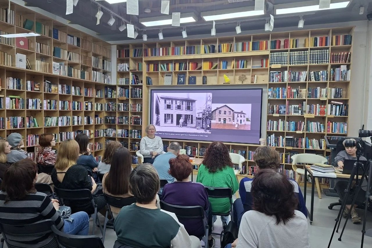 Лекцию сопровождали редкие фотографии XIX века и живые иллюстрации. Зрители увидели портрет Марка Твена с братом Генри, снимки Лауры Хокинс, классические рисунки к «Тому Сойеру» и «Гекльберри Финну». Перед глазами проходили первые издания книг: сборник «Знаменитая скачущая лягушка из Калавераса» (1865) и последующие тома. Отдельно лектор остановилась на путевых заметках «Простаки за границей» — остроумной хронике путешествия Твена по Европе и Святой земле в 1867 году, которая принесла ему первую массовую известность.