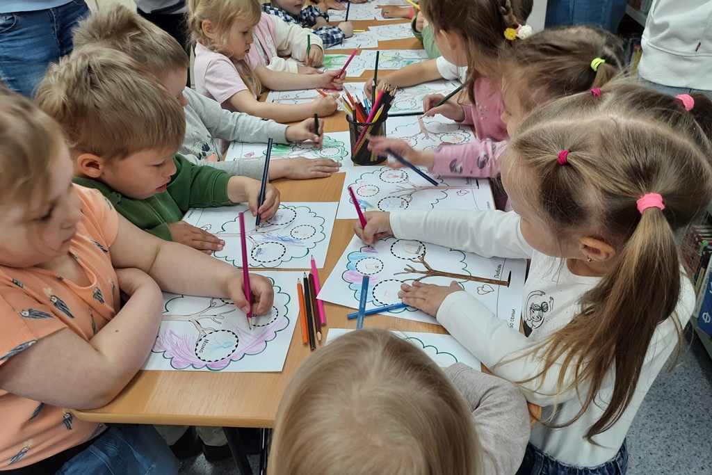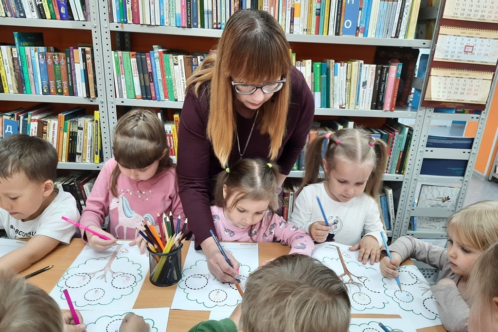 В ходе экскурсии по отделам и абонементам дети познакомились с правилами записи и читательским билетом. Затем состоялась беседа – игра «Моя семья», а также мастер-класс «Рисуем семейное древо», на котором малыши цветными карандашами рисовали членов своих семей.