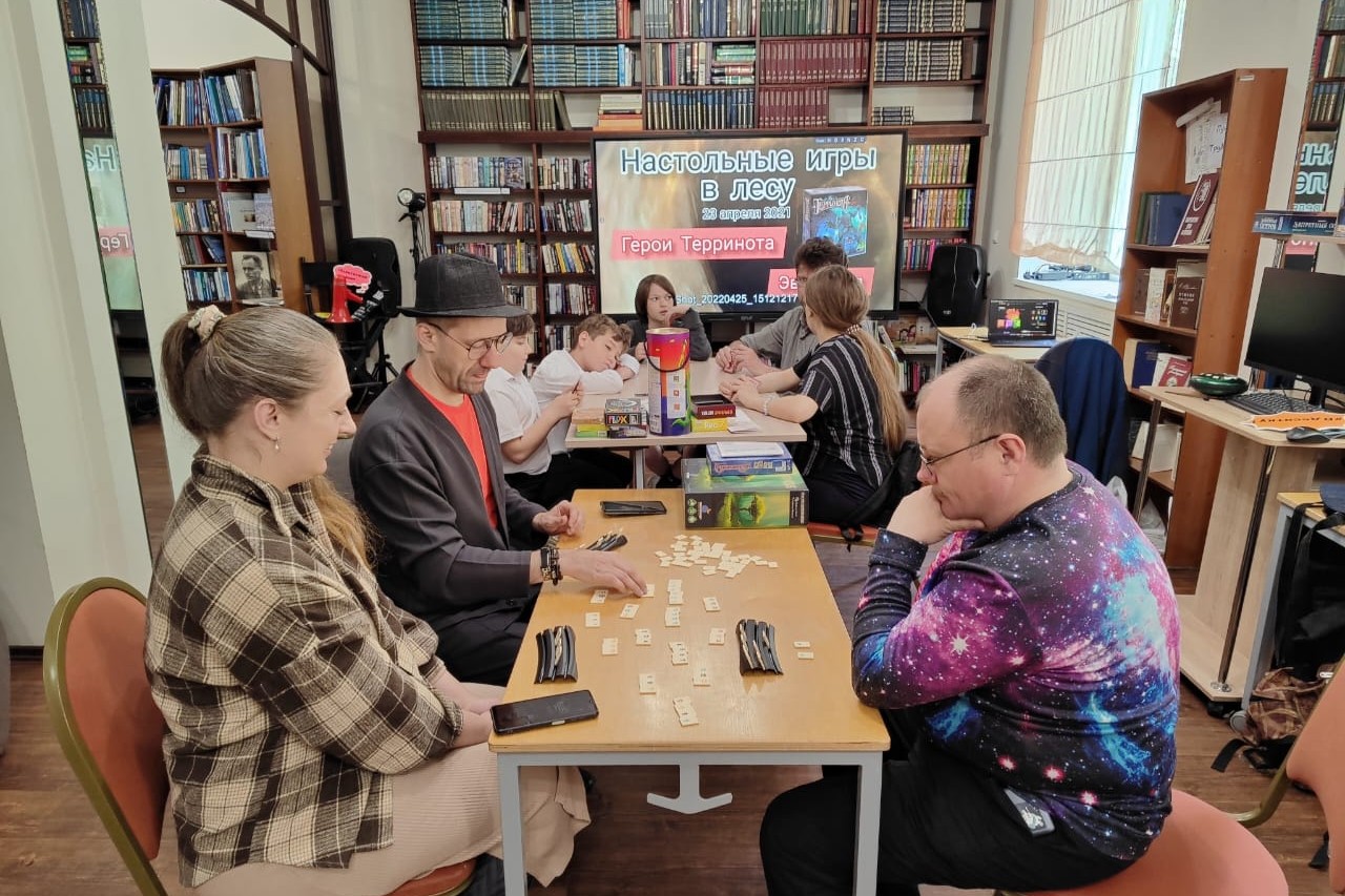 В библиотеке № 10 состоялась тематическая встреча игроклуба «Фактор Семы». Игры этого дня были посвящена природно-мистической тематике, духам леса, работе со стихиями огня воздуха земли воды, выживанию в диких условиях. На встречу пришел «настоящий» Шаман, который рассказал о совмещении шаманских технологий с настольными играми в лесу, он поиграл с гостями библиотеки в такие игры, как Расцвет, Марш муравьев, Герои Терринота, Арборетум, Духи леса!