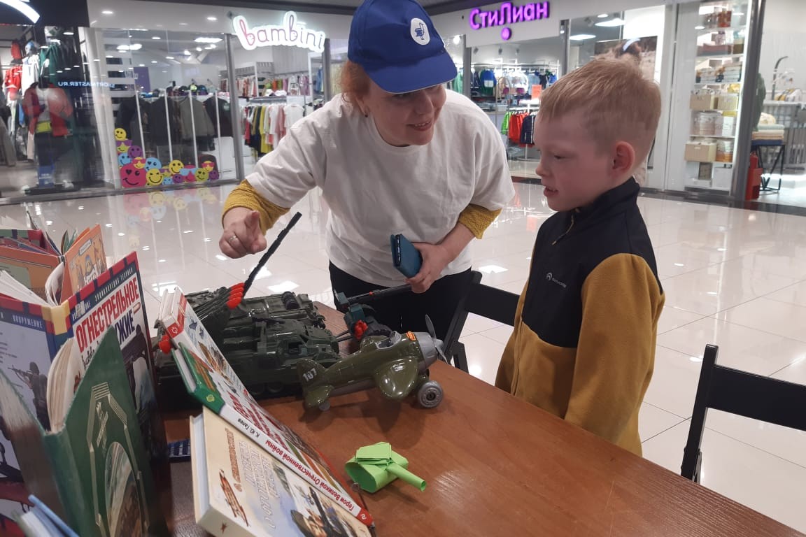 Ребята, которые пришли неделей раньше на литературные игры в ТРЦ «Седанка-Сити» не только делали открытки для своих близких – участников Великой Отечественной войны, но и узнали много интересных фактов о Великой Отечественной войне. Сотрудники библиотек познакомили ребят с книгами о Великой Отечественной войне 1941-1945 гг., рассказали о вкладе Дальнего Востока и Приморского края в победу над фашисткой Германией. Мальчишки с удовольствием листали энциклопедии о военной технике и рассматривали их копии, представленные не книжной выставке.