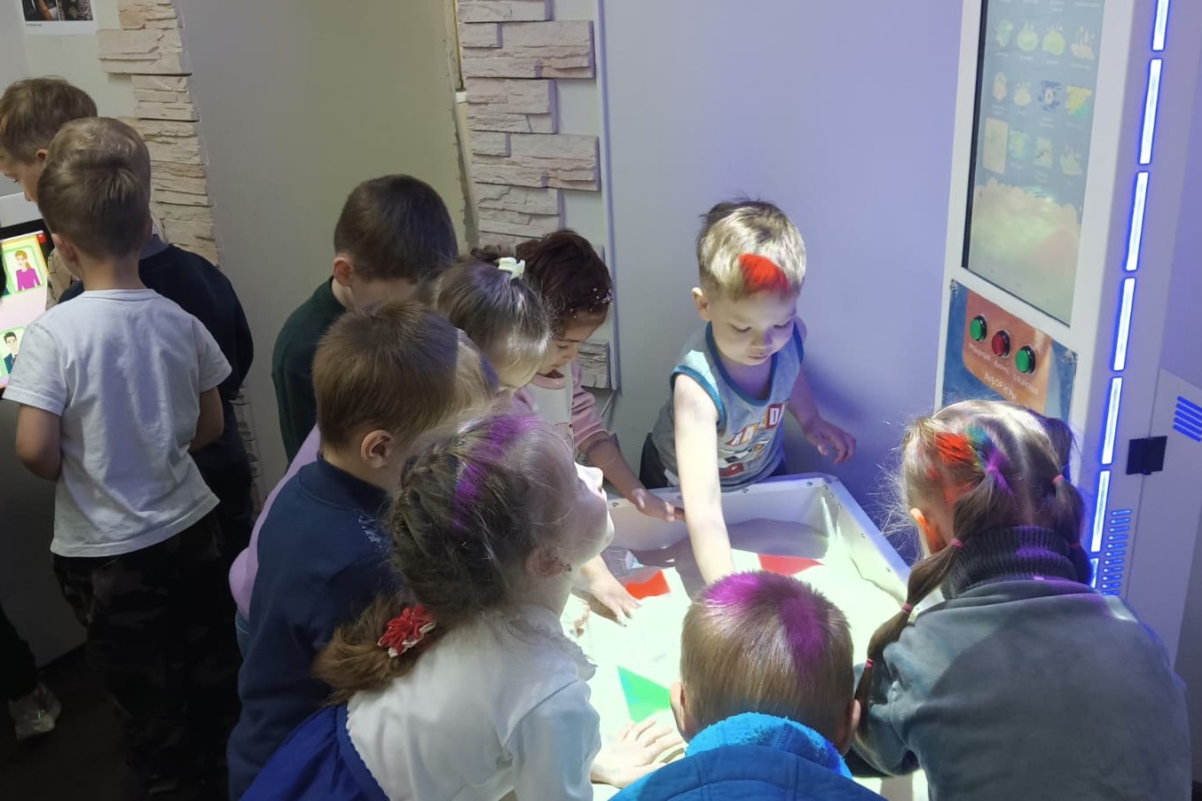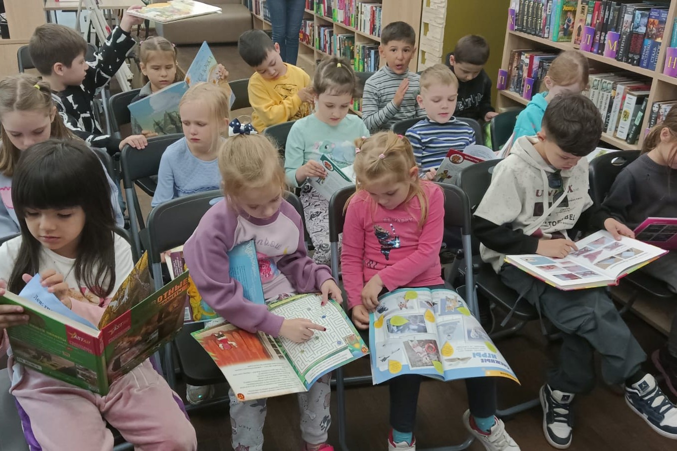 О предшественниках бумаги и ценности книги, о библиотеках мира и современных библиотечных пространствах и активностях, рассказали сотрудники ребятам. Дети с удовольствием отвечали на вопросы литературной викторины, потренировались в речевом искусстве произносить скороговорки, прочли весёлые стихотворения Яснова и Усачёва, рассмотрели новые яркие книги. Вторую часть нашей встречи мы посвятили знакомству с детским залом, где царит атмосфера творчества и игр. Зачарованно ребята смотрели Сказку о рыбаке и рыбке в формате театра теней, поиграли на игровых интерактивных столах и не отходили от 3Д песочницы. Дети были в восторге.