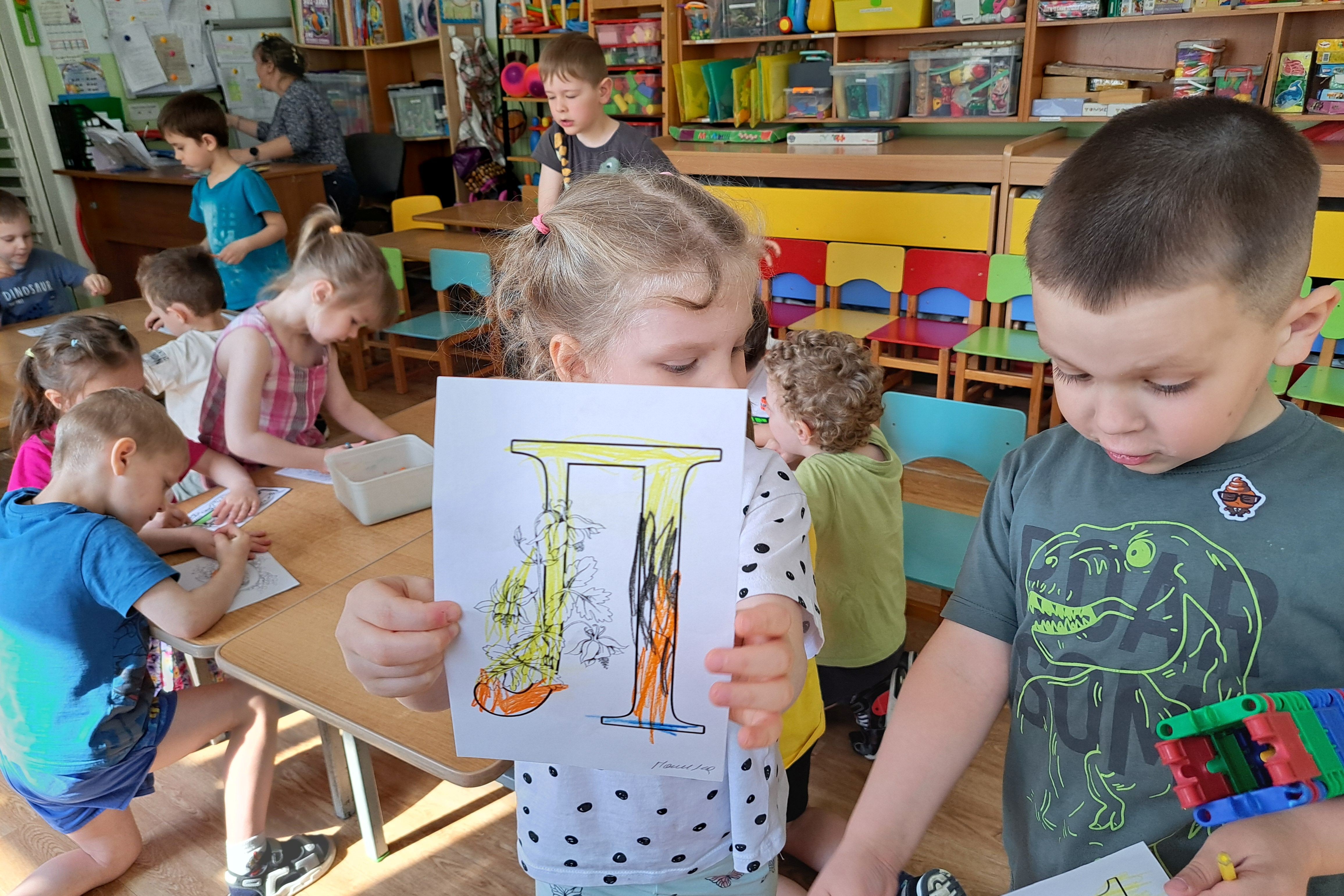 Дошкольники из ДОУ №165 также «познакомились» с Кириллом и Мефодием. Помогли им в этом сотрудники библиотеки №14. Дети внимательно слушали историю о святых братьях, которые создали систему славянской письменности. Повторяли буквы, удивляясь звучанию древнерусского алфавита. В заключение встречи, воспитанники украшали букву так, чтобы она стала маленькой картинкой.