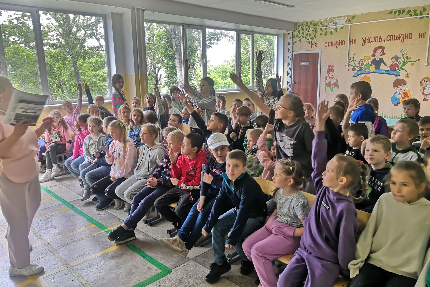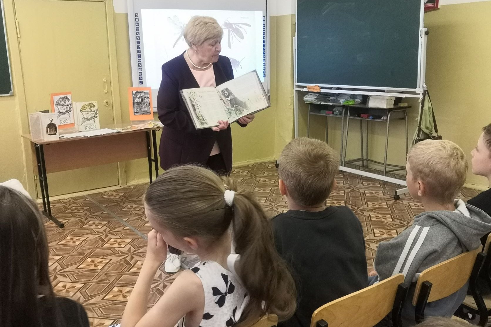В ходе мероприятия дети угадывали животных, с которыми сталкивался В.К. Арсеньев, изображенных на карточках в книге. И хором отвечали на вопросы викторины.