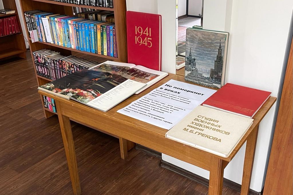 22 июня в библиотеке № 10 широкому кругу посетителей была представлена выставка альбомов, книжных репродукций выстроенных по материалам всероссийских художественных выставок, где в иллюстрированной форме представлены разнообразные жанры: картин, плакатов, скульптурных образов, объединенных общей темой «Мир отстояли- Мир сохраним!» Представленная подборка книг объединяет художников разных поколений — тех, кто сражался на фронтах Великой Отечественной войны: А.Дайнеко, А. Пластов, И. Тоидзе. А также тех, кто родился и посвятил своё творчество героям Отечества: Б. Парконов, Р. Харламов, М. Воскресенская.