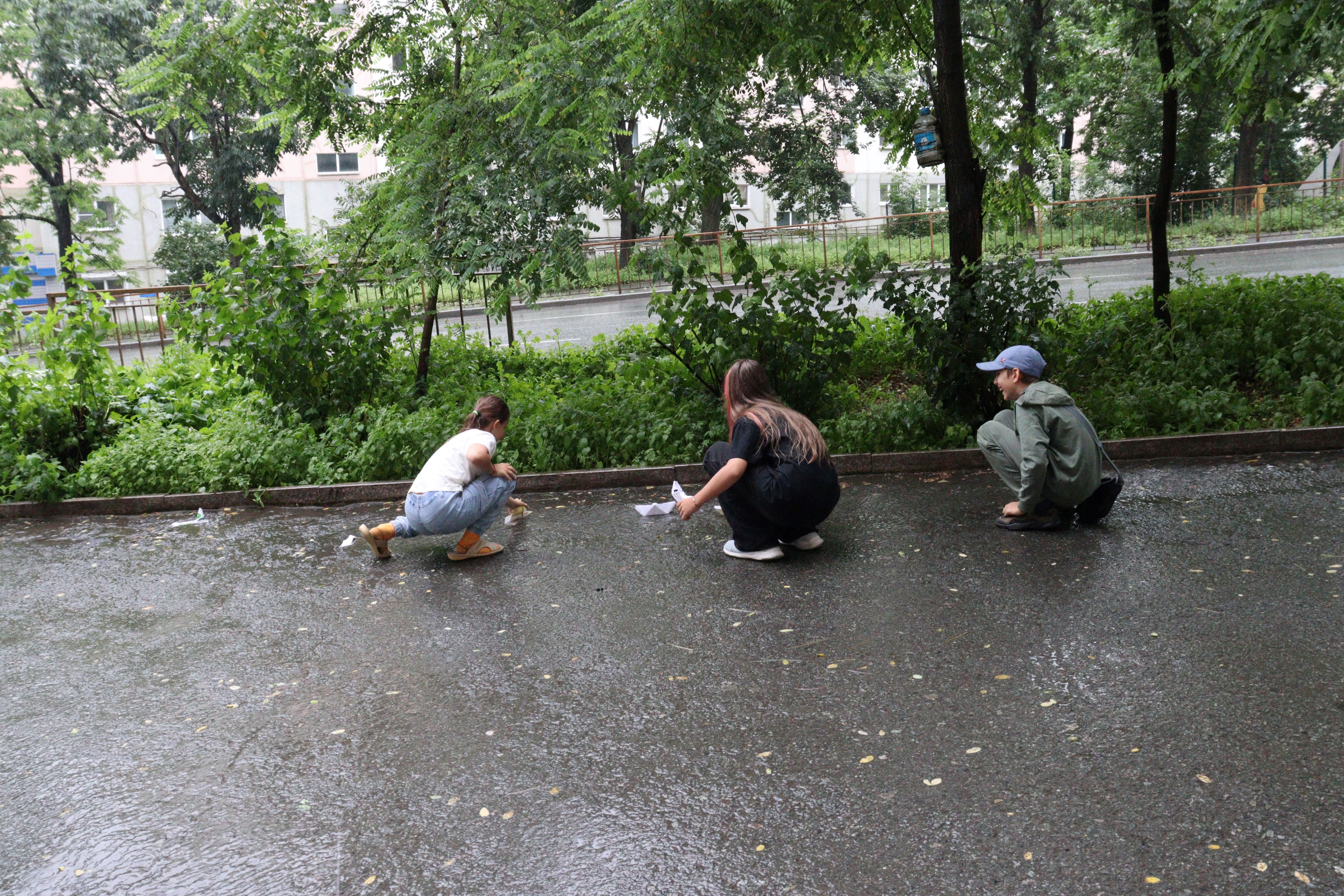 Неожиданно начавшийся дождь стал преградой и изменил намеченные планы ребятам на прогулку, но дети не расстроились, а придумали интересное решение – смастерить кораблики из бумаги и попробовать их запустить на улице. Маленькие капитаны с восторгом наблюдали, как бумажные кораблики плывут по воде, сопровождаемые весёлыми криками и аплодисментами со стороны других детей. Такой неожиданный поворот событий добавил мероприятию больше веселья и радости.