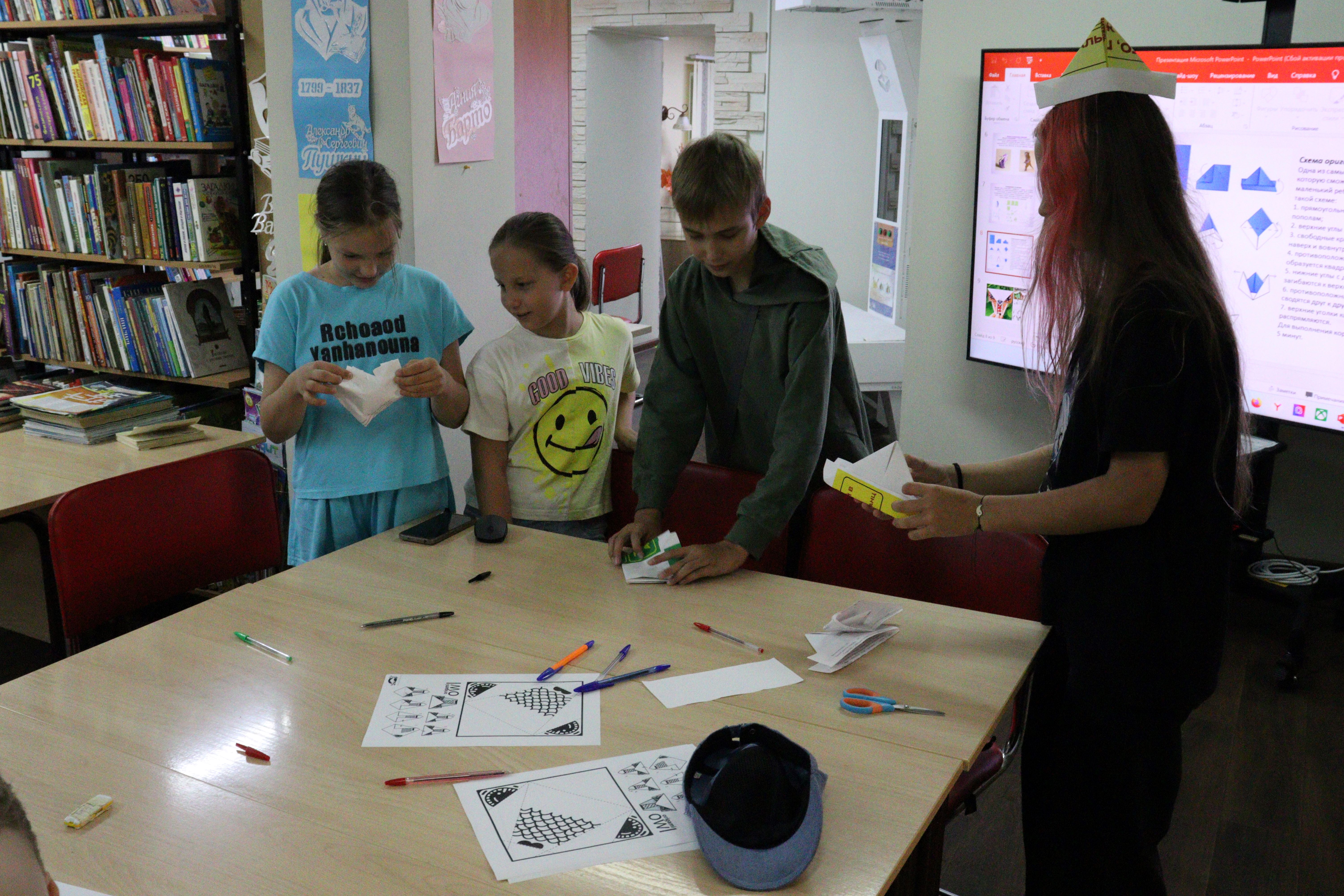 Арт-час «Фантазии и тайны библиотечного дома» в рамках цикла познавательно-развлекательных мероприятий «Почемучкина поляна» проведен 18 июня в библиотеке № 4. Юные читатели сначала погрузились в тайны искусства оригами. Они узнали, что такое оригами, какие виды бумаги лучше использовать, и как создаются различные фигуры. Библиотекарь продемонстрировала, как сделать из бумаги фигурку мудрой совы, а после этого мальчики и девочки создали своих красивых сов, раскрасив их.