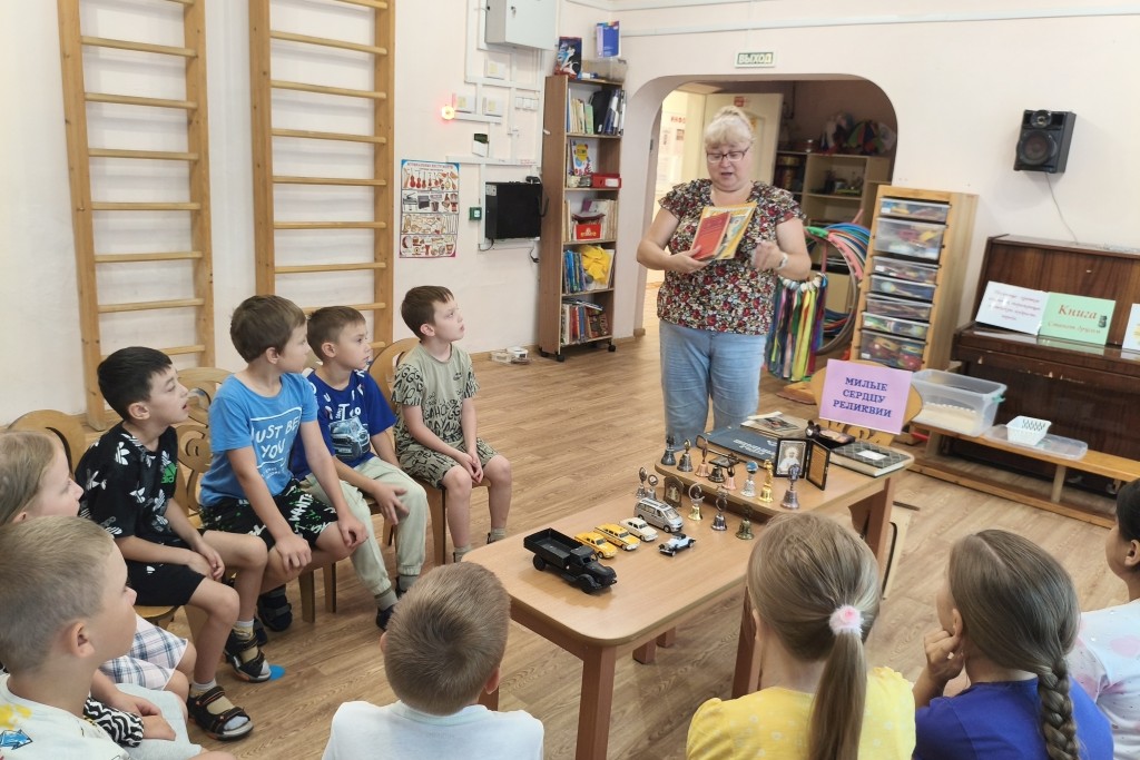 17 июля сотрудники библиотеки им И.У. Басаргина (ул. Юмашева, 8) организовала мероприятие, в ходе которого дети из детского сада общеразвивающего вида № 109 г. Владивостока знакомились с семейными реликвиями. Дети радостно приветствовали ведущую, наперебой рассказывая, что выполнили домашнее задание и вместе с родителями нашли фотоальбомы со старыми фотографиями, расспросили о тех, кто был на них изображен. Из «бабушкиного сундучка» ведущей были извлечены и другие предметы – реликвии, связанные с её семьей, сопровождаемые интересными историями: фарфоровый олимпийский Мишка — символ Олимпиады 1980 года; школьный, заполненный и раскрашенный от руки, фотоальбом со старыми фотографиями, клястер – специальный альбом с марками (что такое «марка» никто из ребят не знал, каждый смог выбрать одну марку себе на память), постоянно пополняемая семейная коллекция колокольчиков, а также детские книги, которые были изданы более 50 лет назад: В.Ф. Одоевский «Мороз Иванович», К. Паустовский «Стальное колечко», У. Дисней «Том и Джери» и другие. Книгу А. Гайдара «Сказка о Военной тайне, о Мальчише-Кибальчише и его твёрдом слове» прочитали вслух, поразились.