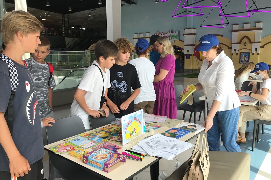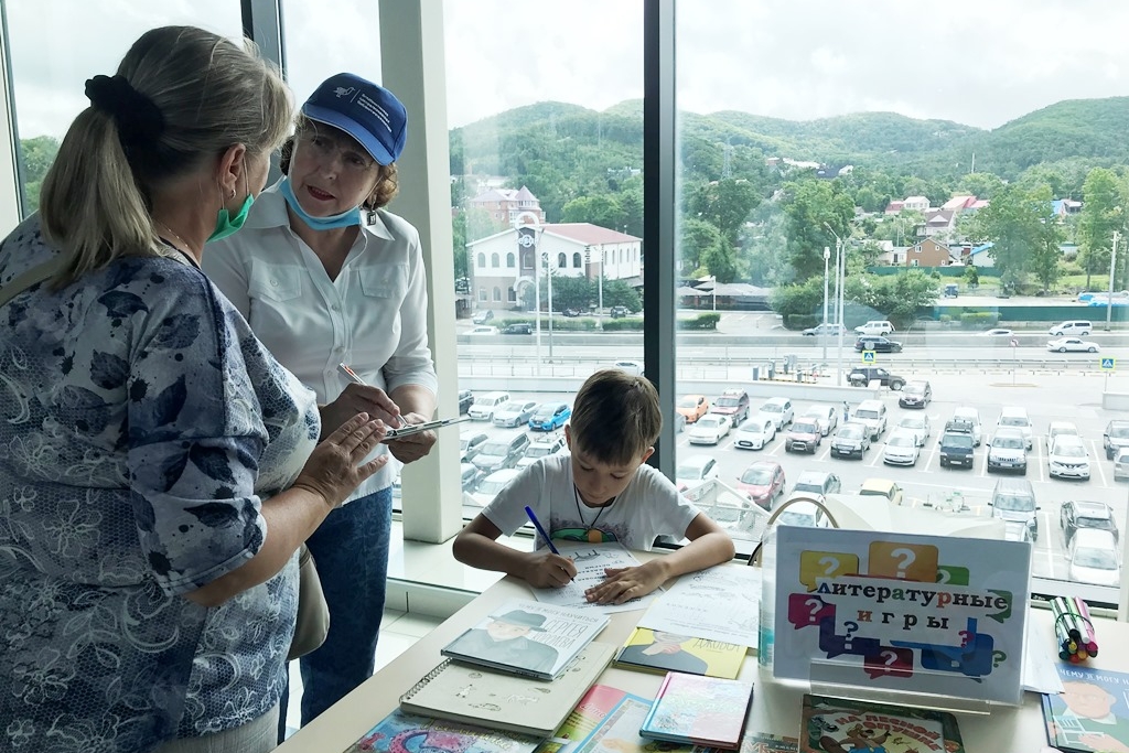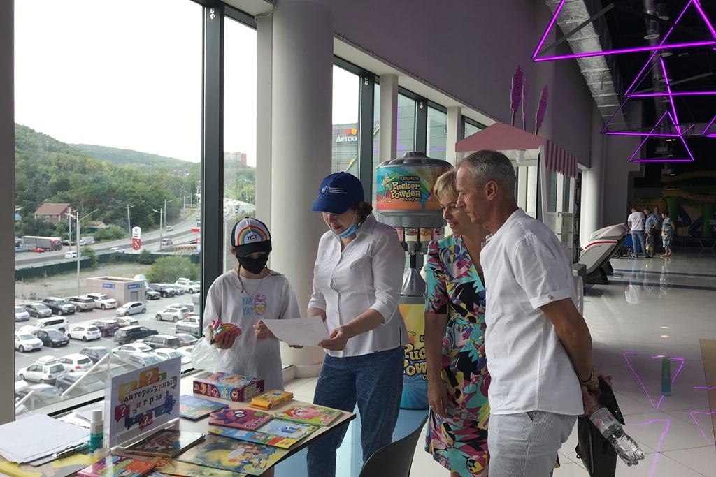Открытая библиотечная площадка «Литературные игры» в ТРК «Седанка-Сити» продолжила работу 21 августа. В этот день здесь было особенно многолюдно, в-основном шли семьями, поэтому и родители, и дети, и бабушки, и дедушки принимали самое активное участие в литературных играх, проводимых сотрудниками библиотек.