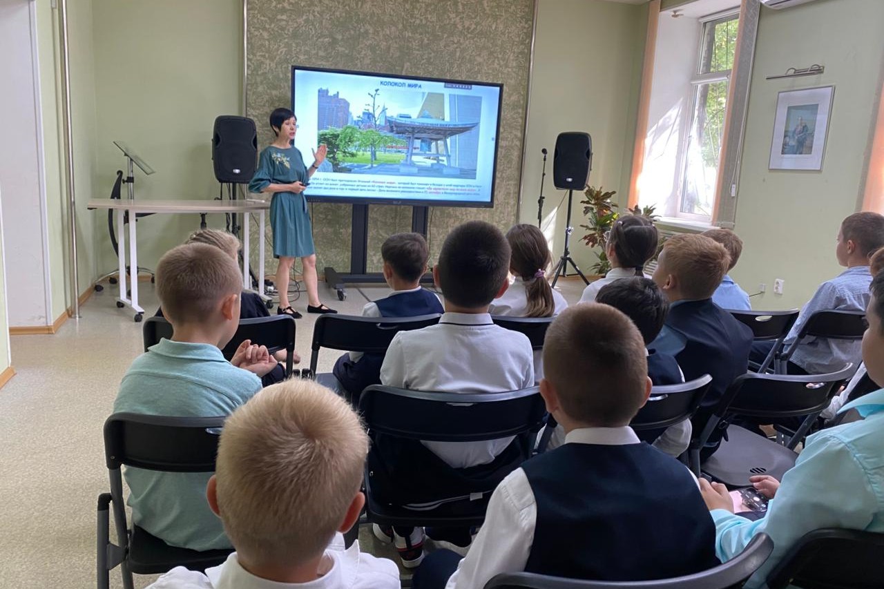 19 сентября патриотический час «Миру – мир!» состоялся в библиотеке им. Н.Н. Муравьева-Амурского (ул. Калинина, 21) для школьников СОШ № 62. Участники встречи познакомились с историей и традициями этого праздника. На слайдах презентации читатели увидели символы праздника – голубя мира и колокол мира, отлитый из монет, собранных детьми из 60 стран. Познакомились с церемонией праздника и увидели интересные памятные знаки, посвященные теме мира. Например, скульптуру «Нет насилию» в Нью-Йорке и памятник «Миру – мир», установленный в Москве. Юные читатели узнали о том, чем занимаются миротворческие силы ООН и послы Доброй воли, вспомнили некоторые эпизоды, связанные с трагическими событиями в Беслане. Ребят очень тронул рассказ о японской девочке Садако Сасаки, ставшей одной из жертв ядерного взрыва в Хиросиме и ее борьбе за мечту.