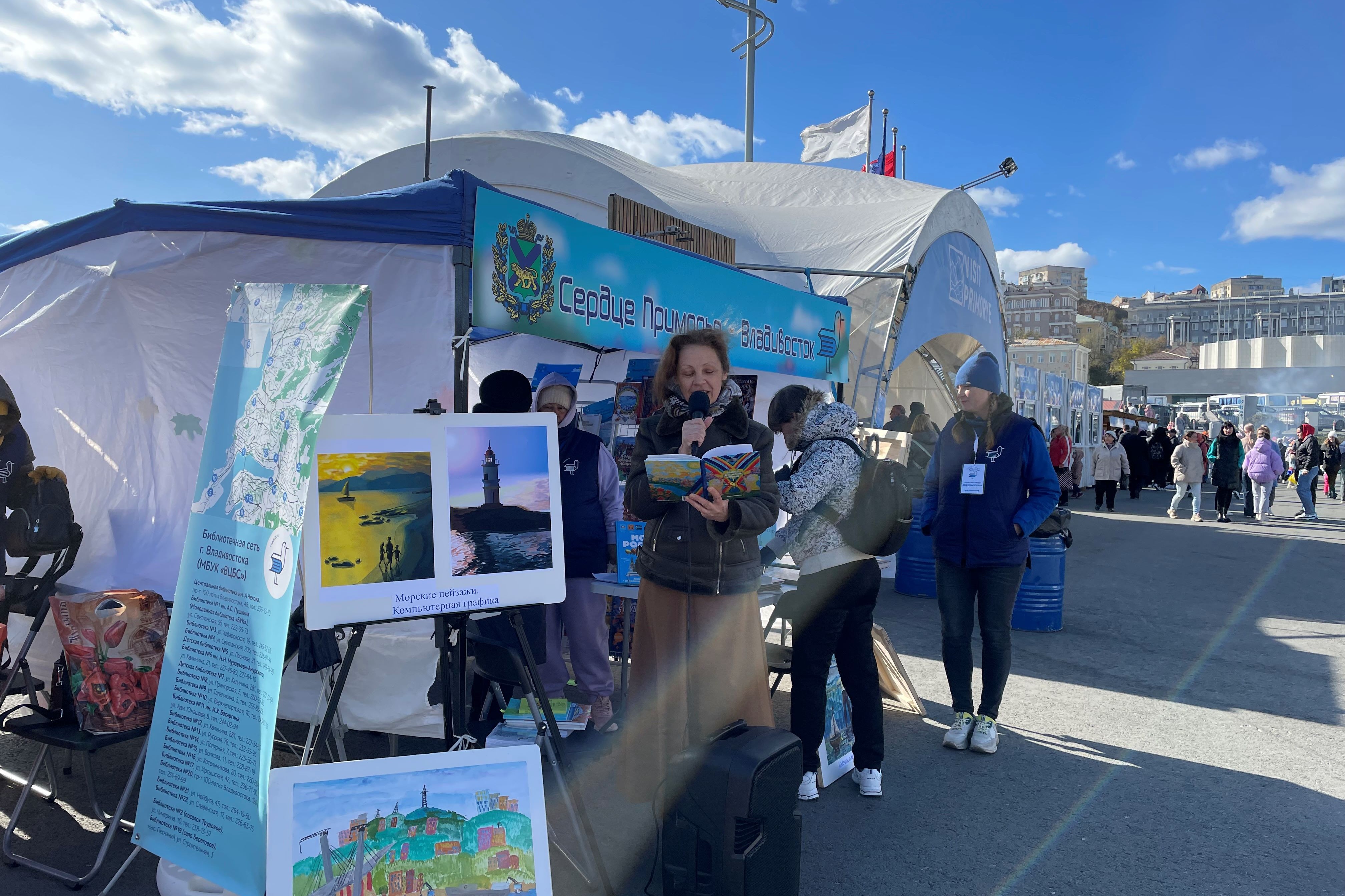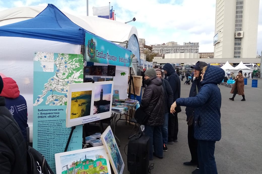 Сотни горожан посетили 21 октября открытую библиотечную площадку «Сердце Приморья – Владивосток» на Центральной площади Владивостока. Муниципальные библиотеки Владивостока представили на празднике уникальный книжный фонд и активности краеведческой тематики.