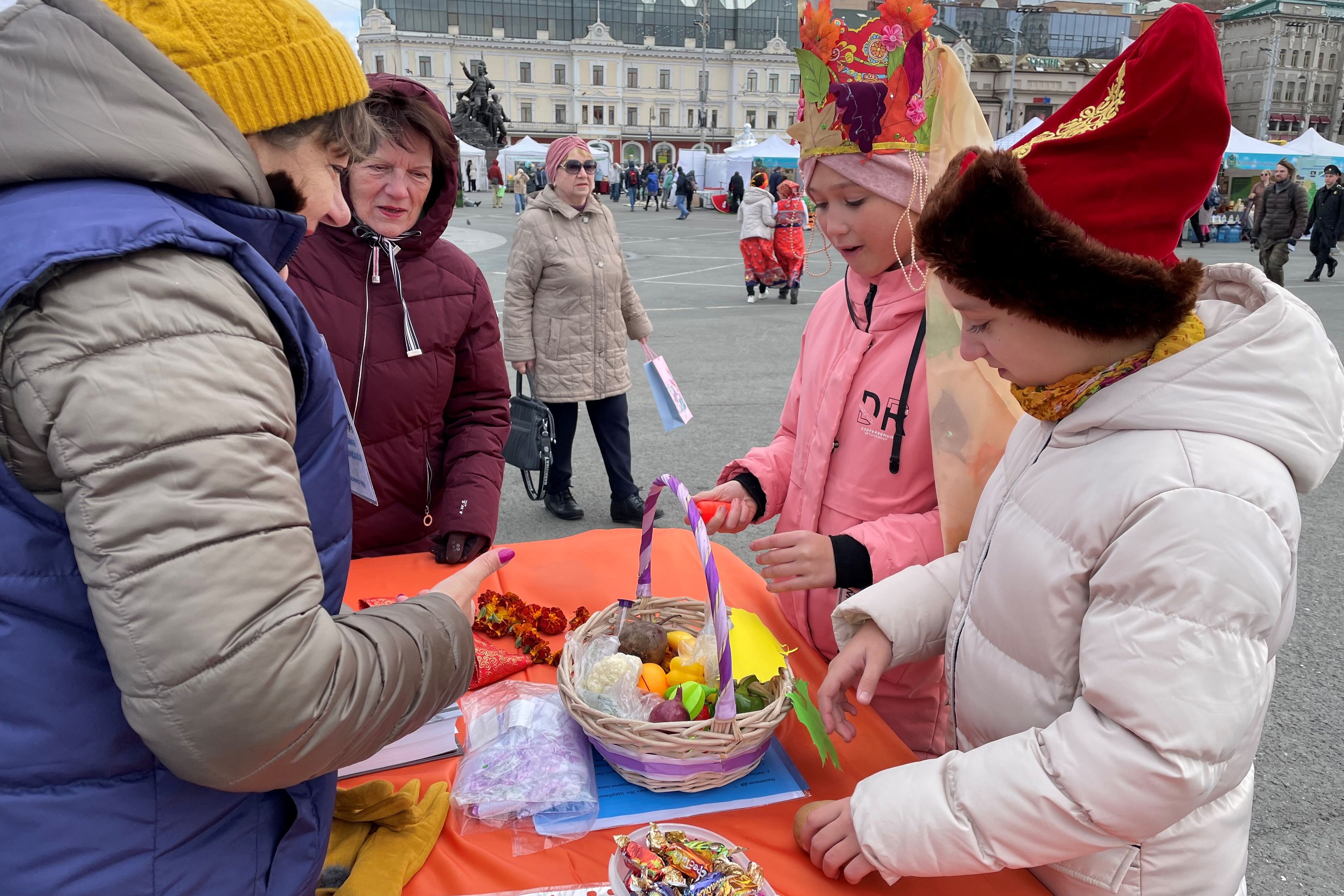 Чтобы согреться, все вместе с удовольствием участвовали в веселых подвижных играх. В холодный день на «ура» шла интерактивная игра, когда надо было «приготовить сарт суп по-приморски» по известной считалочке Юлиана Тувима (перевод Сергея Михалкова). Было очень весело, когда даже умудрённые опытом хозяйки добавляли практически все продукты, а потом весело смеялись над своей оплошностью.