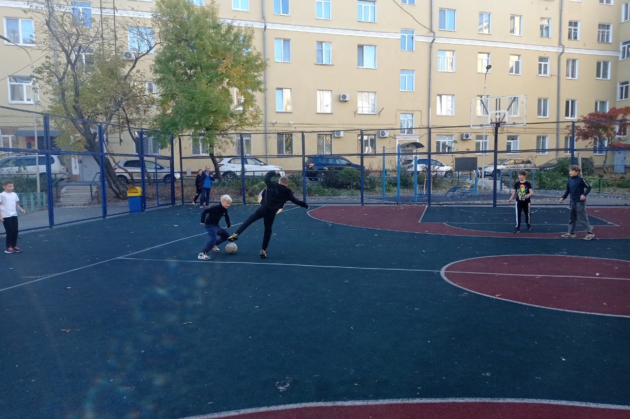 Сначала состоялся матч товарищеский на спортплощадке возле библиотеки № 10. Отдельное спасибо управлению физической культуры и спорта @prosport_vvo за неё. На футбольном поле судейскую работу помог организовать Дмитрий Викторович, тренер спортивной школы г. Владивостока «Старт».