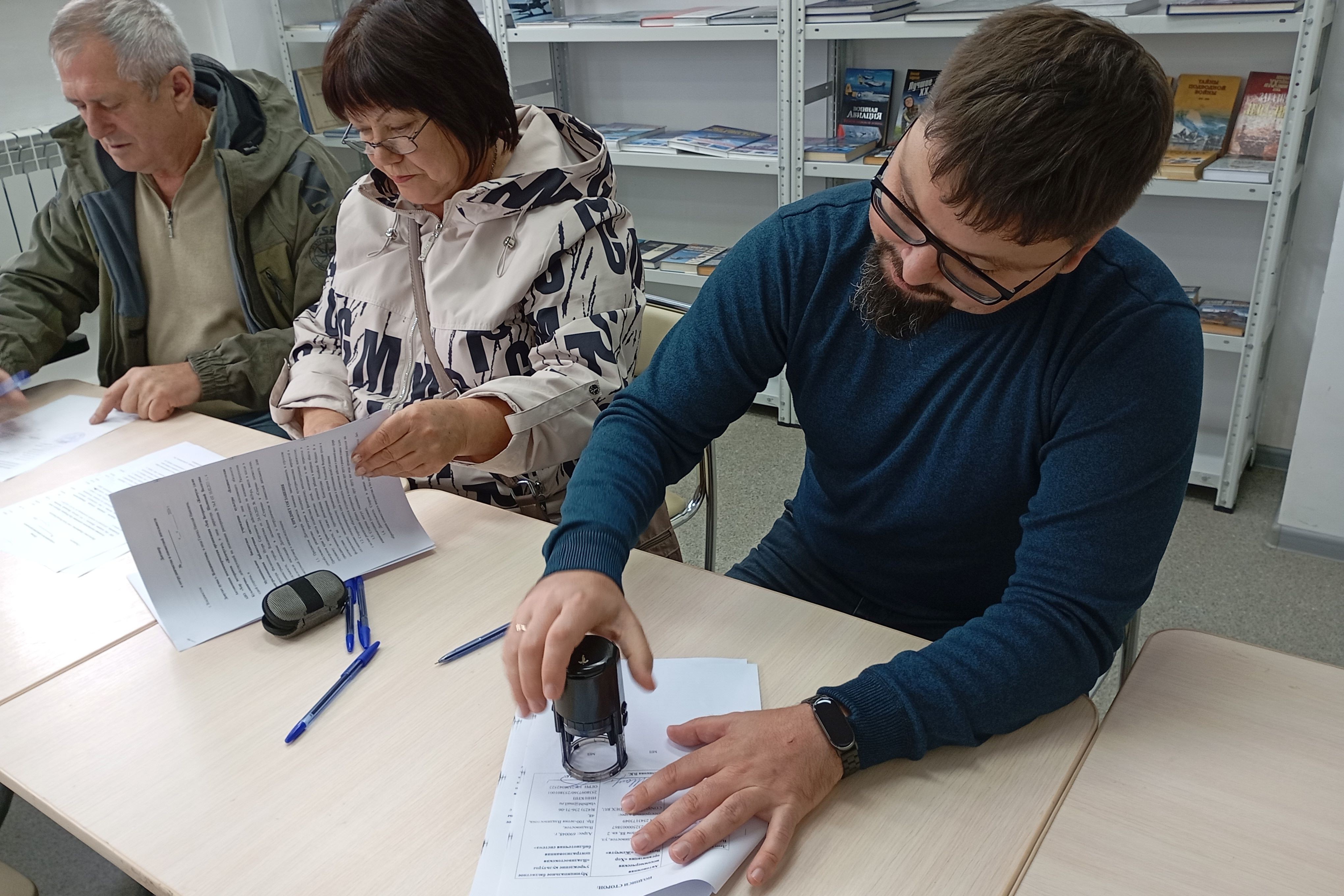 Трёхстороннее соглашение о сотрудничестве подписали руководитель централизованной библиотечной системы Владивостока Игорь Филиппов, руководитель хора Валентина Шаликова и депутат Думы г. Владивостока Николай Голояд.