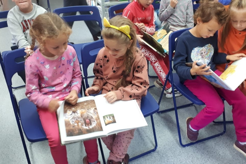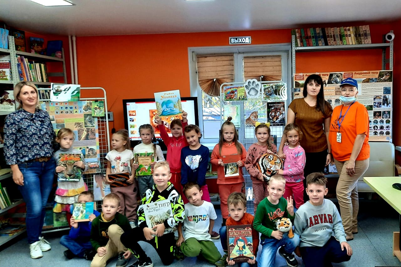 Библиотека № 20 в рамках «Школы читателя» организовала для воспитанников ФГБДОУ «ЦРР – Детски сад № 188» познавательную экскурсию в библиотеку, на которой юных читателей познакомили с правилами пользования библиотекой, обращения с книгами. В зале детского абонемента ребят ждал сюрприз – красочная презентация «Тигриный марафон» и панорамная книжно-иллюстративная выставка «Дикие кошки». Юные читатели узнали много интересного о больших полосатых кошках, посмотрели видеосюжеты о тиграх и тигрятах, мультфильм «Тигренок на подсолнухе» и даже услышали настоящий тигриный рык. Также дети с интересом листали Красную книгу России и Красную книгу Приморского края, в которую занесены амурский тигр и дальневосточный леопард, книжки про тигренка Амурчика Сергея Георгиева и многие другие, а также прослушали стихотворение Владимира Степанова «Самый полосатый» из журнала «Мурзилка».