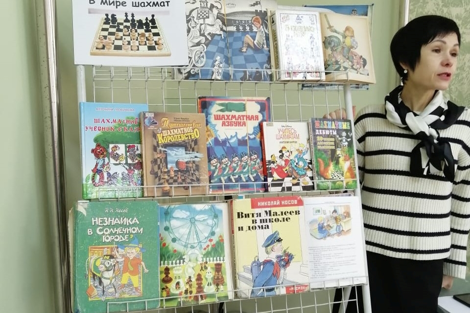 Познавательно-литературный час «Шахматные истории» для ребят из секции шахмат детского клуба «Гренада» состоялся в библиотеке им. Н.Н. Муравьева-Амурского. Юные шахматисты просмотрели электронную презентацию, из которой узнали, как увлечение шахматами влияет на мозг человека, как увлечение шахматами чуть не стоило жизни полководцу Александру Суворову, где в России находится Шахматный город. Ребята познакомились с произведениями литературы, в которых нашла отражение древняя игра, и увидели, как она удачно вписывается в разные жанры – сказку, фантастические и исторические рассказы, детективные расследования, поэтические произведения. Юные читатели прослушали отрывки из сказки Николая Носова «Незнайка в Солнечном городе», повести «Витя Малеев в школе и дома», познакомились с «фосфорическим» мальчиком – героем повести Валерия Медведева «Капитан Соври-голова», разобрали шахматную партию из книги Джоан Роулинг «Гарри Поттер и философский камень». Самым загадочным и шахматным произведением была признана сказка Льюиса Кэрролла «Алиса в Зазеркалье». Пока еще не все ребята были знакомы с этой сказкой, а первоклассница Надя Головкина по окончании встречи – записалась в библиотеку и среди прочих книг взяла для чтения сказочную историю о путешествие Алисы в Зазеркальную страну. Но не только о художественных произведениях шла речь. Вниманию ребят были представлены детские книги по обучению игре в шахматы, составленные в виде сборников сказок и историй с большим количеством иллюстративного материала. Эти книги помогут юным шахматистам достичь успехов в овладении всеми тонкостями игры.