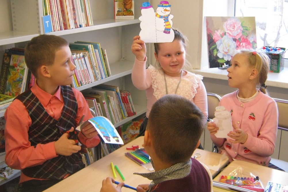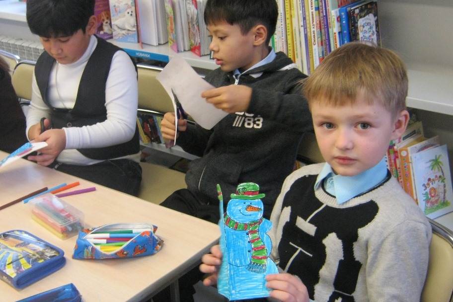 20 декабря в библиотеке №8 школьники 2«А» класса СОШ №35 знакомились с коллекцией новогодних книг. На детском абонементе почти два стеллажа заняла «Библиотека деда Мороза». Второклашки расположились с книгами за столами в детском зале, и оказалось, что Библиотека Деда Мороза — это не только замечательно иллюстрированные сказки и истории. Это еще и познавательные страницы, например, маленький узбек из 2-го «А» захотел узнать, как зовут Деда Мороза в Узбекистане, а его одноклассник, мальчик японских кровей – как зовут Деда Мороза в Японии. Девочек больше заинтересовала книга с дореволюционными поздравительными открытками и карнавальными масками. Маски можно было аккуратно достать из специального кармана на странице и примерить, а открытки путешествовали по столам, их повертел в руках каждый школьник. Домой ребята тоже ушли с открытками, но уже сделанными своими руками, в виде снеговиков.