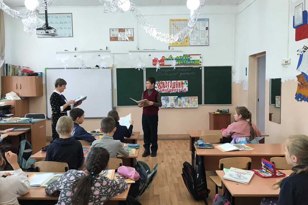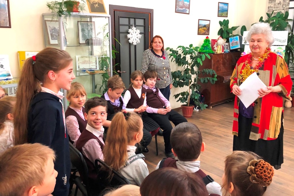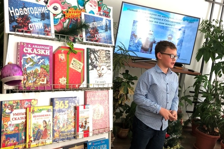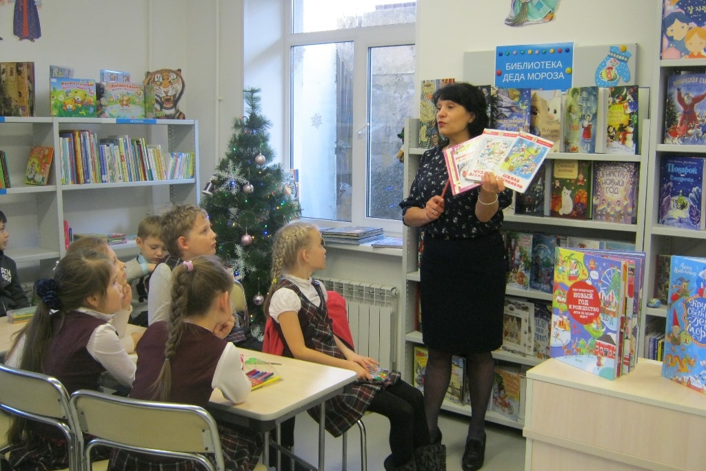 20 декабря сотрудники детской библиотеки №7 приехали на Русский остров в школу №15, чтобы поздравить всех с наступающим Новым годом и пригласить в путешествие по разным странам, узнать, как там встречают праздник, познакомить с зимними праздниками, зимними сказками, рассказами, стихами и песнями, которых так много в библиотеке. Сколько раз встречают в году Новый год, когда на самом деле наступает год, с началом перезвона колоколов или после двенадцатого удара курантов, какое новогоднее дерево самое лучшее. Дети внимательно слушали интересные истории про Дедов Морозов в разных странах, про зимние забавы и зимние приметы, про «моржей» — закаленных людей, которые не боятся ни мороза, ни ветра, ни холода. Хором читали стихотворения о зиме известных русских поэтов – Сергея Есенина, Раисы Кудашевой, Федора Тютчева, Николая Некрасова, Александра Блока, Александра Пушкина, Константина Бальмонта.