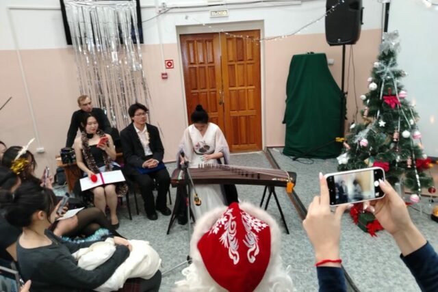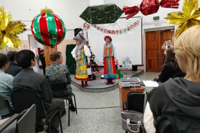 В Центре русского языка и культуры Дальневосточного федерального университета состоялось новогоднее мероприятие, призванное объединить иностранных студентов, изучающих русский язык. Нарядно украшенный просторный зал создавал идеальную атмосферу для праздника, в котором в качестве гостя приняла участие и библиотека № 21. Подготовкой и проведением мероприятия занималась педагог дополнительного образования ЦРЯК ДВФУ Наталья Николаевна Скидан.
