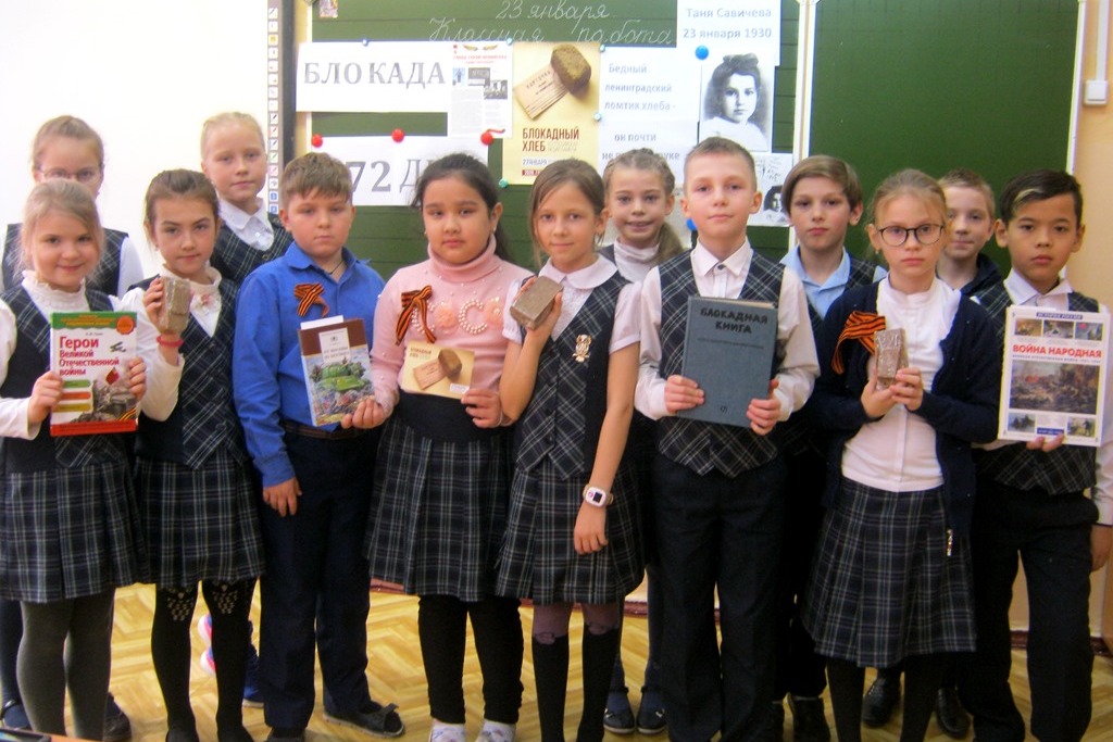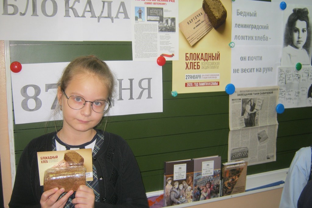 Отдельной страницей отмечен день 23 января, ведь именно в этот день в 1930 году родилась Таня Савичева и если бы она была жива, то отметила бы свой 90-летний юбилей. Её дневник стал одним из самых страшных свидетельств ужасов войны. Детей поразил, тронул до глубины души рассказ о жизни Тани и её семьи. Когда её бабушка уже умирала, она завещала как можно дольше её не хоронить, чтобы живые могли получать хлебный паёк по её карточке. Соседи Савичевых съели кота, Савичевы поклялись, не есть своего кота Барсика. Через неделю он пропал – съели другие. В последние дни Таня выменяла на какие-то домашние сокровища головку лука, пыталась накормить им маму, погибающую от цинги, но мама уже не могла есть. Старшая сестра Тани Женя, умершая первой, перед смертью просила только об одном: «Достаньте гроб, боюсь, земля попадет в глаза». И за две буханки хлеба её мама нашла гроб для Жени. Она отдала хлеб за уже мёртвую дочь. Реальная история жизни реальной семьи поразила своей страшной, голодной правдой. Ведь этот блокадный дневник как завещание 11-летней ленинградки Тани Савичевой, синяя адресная книжка всего 9 строк исторической памяти для новых поколений.